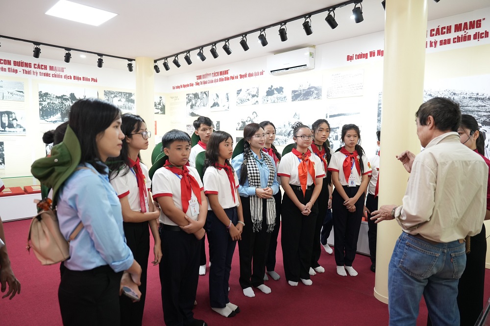 Trong chương trình thăm quan, các đại biểu thiếu nhi và phụ trách tiêu biểu đến từ 63 tỉnh, thành phố đã được nghe bác Võ Điện Biên, con trai Đại tướng Võ Nguyên Giáp chia sẻ về những câu chuyện lịch sử; ý nghĩa, sức mạnh đại đoàn kết dân tộc làm nên chiến thắng lịch sử Điện Biên Phủ mang tầm vóc thời đại.