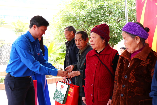 Đồng chí Nguyễn Minh Triết, Bí thư Trung ương Đoàn trao, tặng quà cho gia đình chính sách, các gia định hộ nghèo