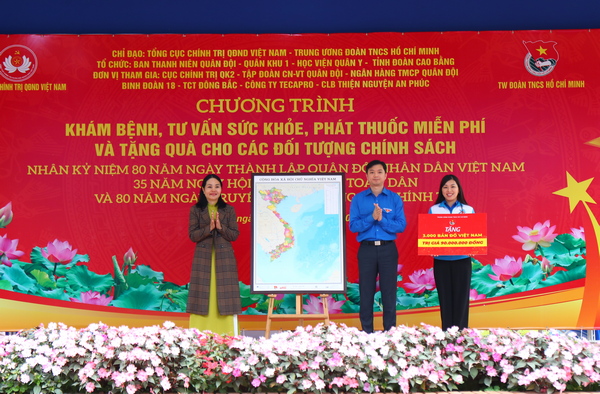 Trong khuôn khổ chương trình, đoàn công tác tổ chức khám bệnh, cấp phát thuốc miễn phí cho hơn 500 bà con nhân dân là các hộ nghèo, gia đình chính sách trên địa bàn huyện Nguyên Bình; thăm, tặng quà 2 gia đình chính sách: Ông Tô Đình Báu (thương binh 62%) và ông Tô Hữu Việt (thương binh 32%), ở xóm Tân Tiến, xã Minh Tâm, huyện Nguyên Bình.