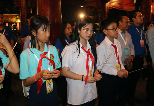 Đoàn đại biểu Phiên họp giả định “Quốc hội trẻ em” lần thứ II, năm 2024 dâng hương truyền thống tại Di tích Quốc gia đặc biệt Văn Miếu - Quốc Tử Giám. Đồng chí Hoàng Thái Nam, Uỷ viên BCH, Phó Trưởng Ban Công tác thiếu nhi làm trưởng đoàn.