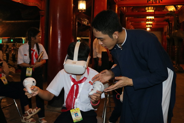 Các đại biểu được trải nghiệm công nghệ thực tế ảo 3D, người tham gia sẽ được viết thư pháp với phông chữ mặc định.