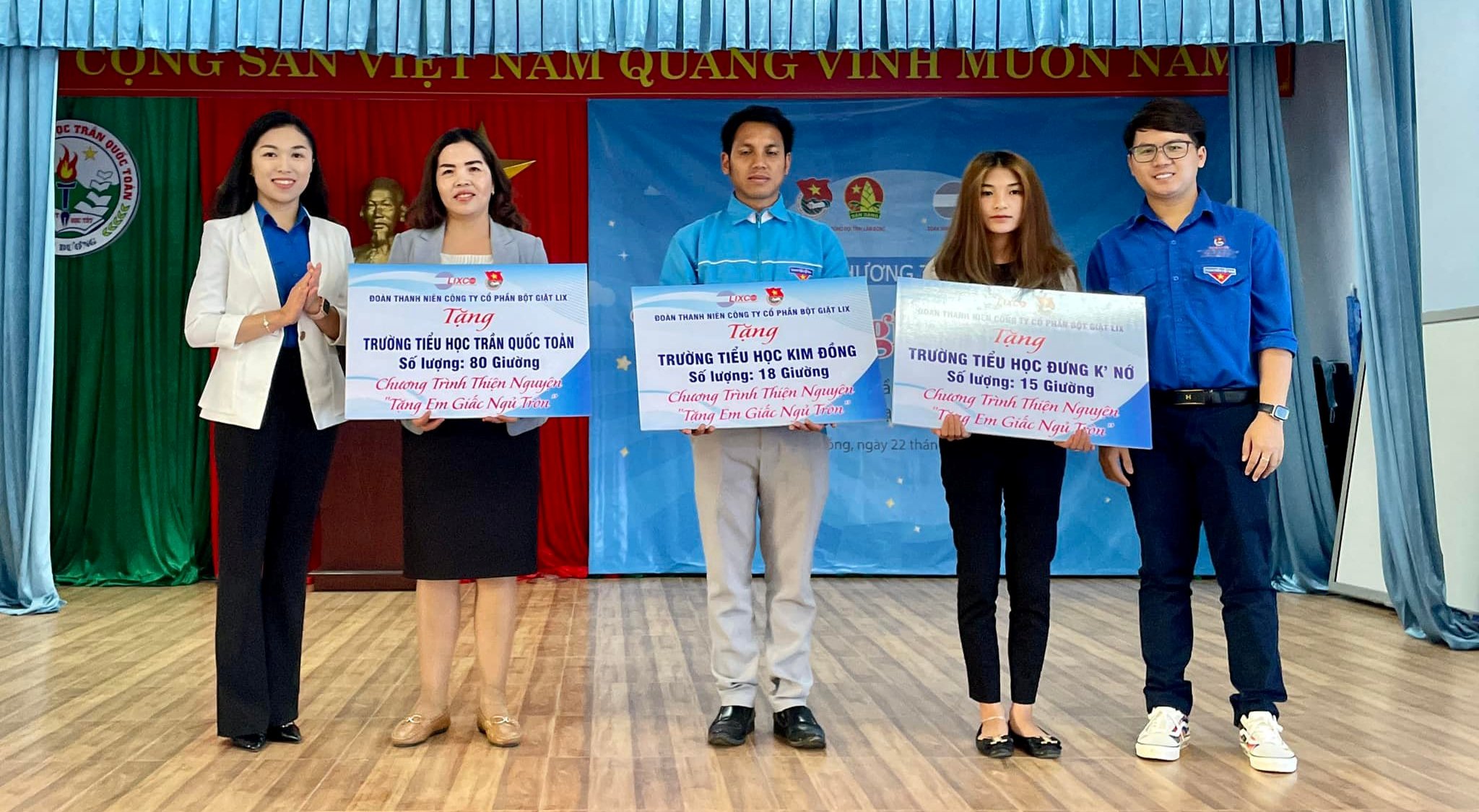 Sáng ngày 22/7, tại trường Tiểu học Trần Quốc Toản, huyên Lạc Dương, Tỉnh đoàn - Hội đồng Đội tỉnh Lâm Đồng phối hợp cùng Đoàn thanh niên Công ty cổ phần bột giặt Lix tổ chức chương trình “Tặng em giấc ngủ tròn” năm 2022.