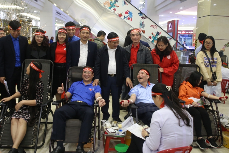 Ngay sau lễ phát động, nhiều cán bộ lãnh đạo cùng đông đảo đoàn viên đã tham gia hiến máu.