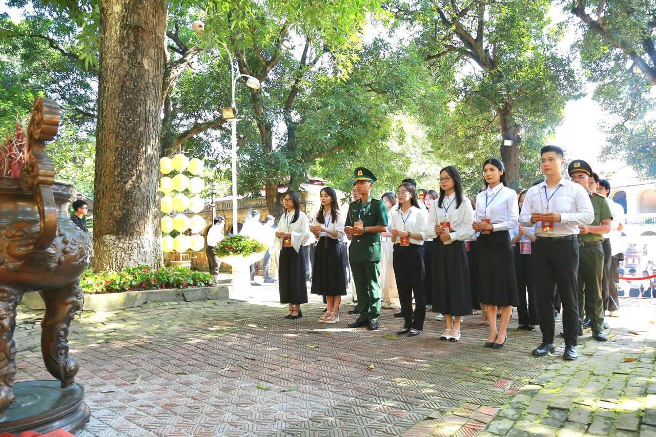 Cũng trong chiều nay, trong khuôn khổ chương trình tuyên dương, 100 thủ khoa xuất sắc tham dự Lễ dâng hương và báo công tại Điện Kính Thiên, Khu di tích Hoàng Thành Thăng Long.