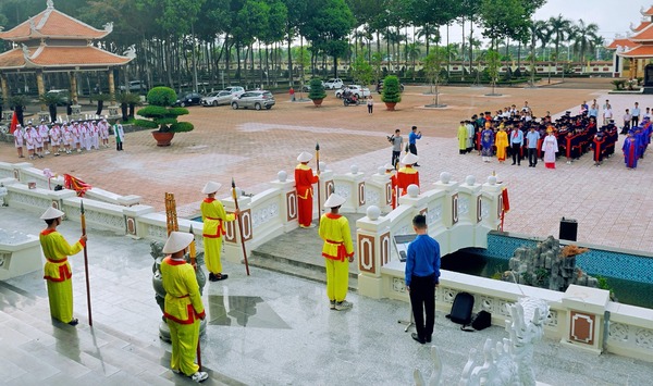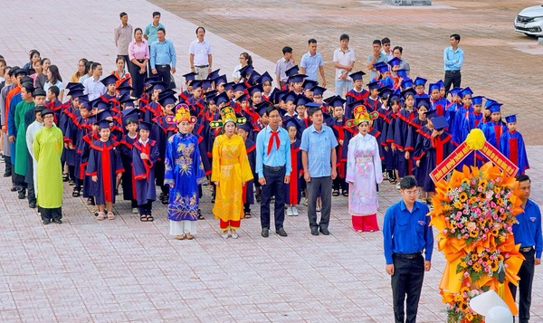 Đoàn đại biểu và thí sinh tham dự Hội thi Trạng Nguyên nhỏ tuổi dâng hương, dâng hoa tại Đền thờ Liệt sĩ huyện Thống Nhất