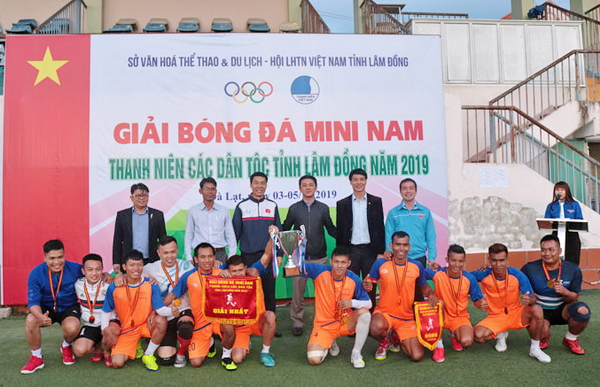 Ban tổ chức trao Cúp và Huy chương Vàng cho đội Di Linh |