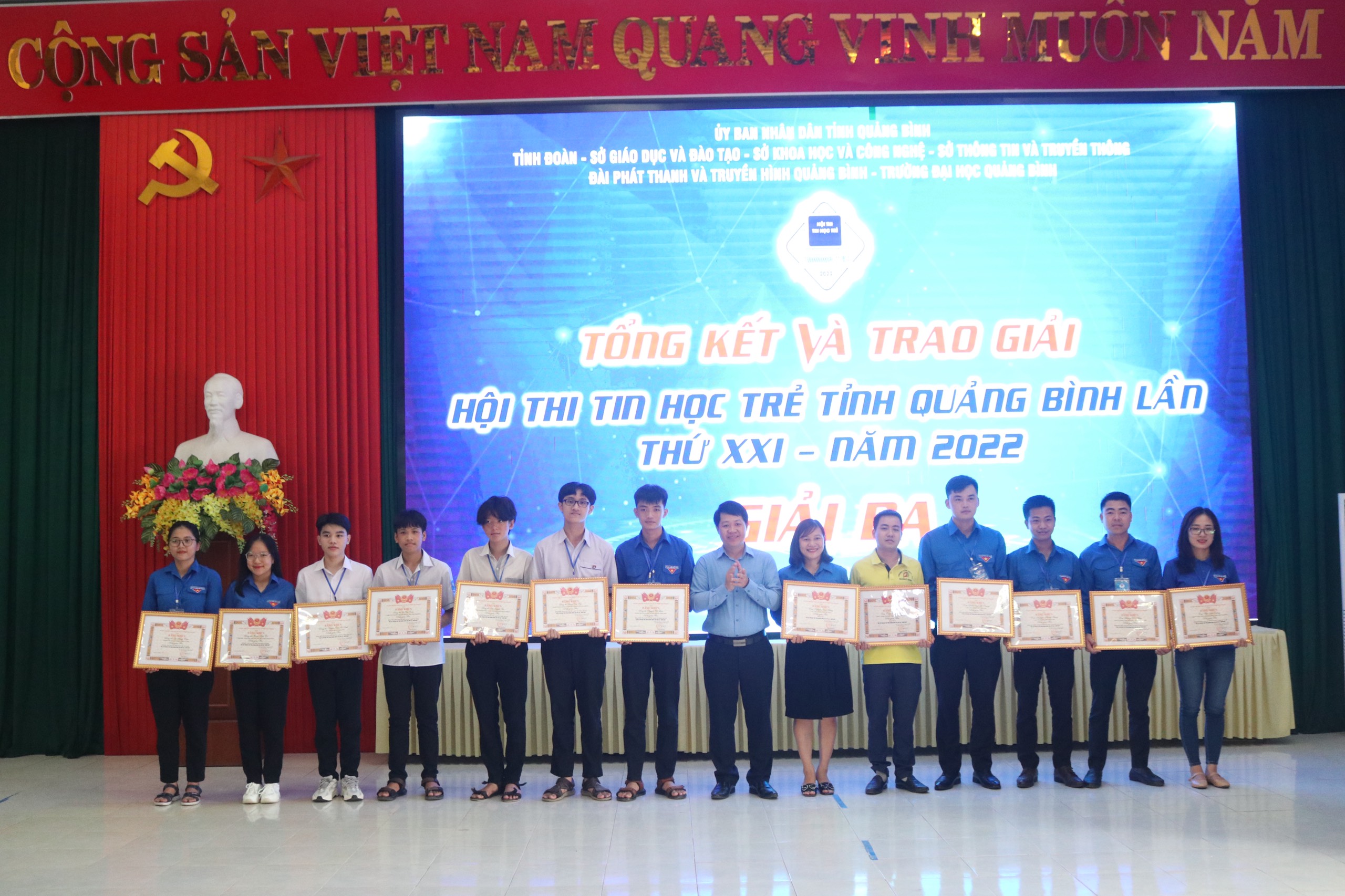 Ban Tổ chức đã trao Bằng khen cho 36 thí sinh xuất sắc nhất của cả 02 khối thi. Tại Bảng học sinh gồm: 01 giải nhất; 03 giải nhì; 04 giải ba và 02 giải khuyến khích. Tại Bảng Cán bộ công viên chức gồm: 04 giải nhất; 08 giải nhì; 07 giải ba và 07 giải khuyến khích. Đồng thời lựa chọn các em học sinh đạt giải nhất của các bảng: Tiểu học, THCS, THPT tham gia Hội thi Tin học trẻ toàn quốc lần thứ XXVIII dự kiến diễn ra vào cuối tháng 8/2022. Trong khuôn khổ Lễ Tổng kết và trao giải Hội thi, Ban Tổ chức đã trao Bằng khen cho đơn vị có đủ số lượng thí sinh dự thi các bảng và có kết quả thi cao nhất cho Huyện Đoàn Lệ Thuỷ.