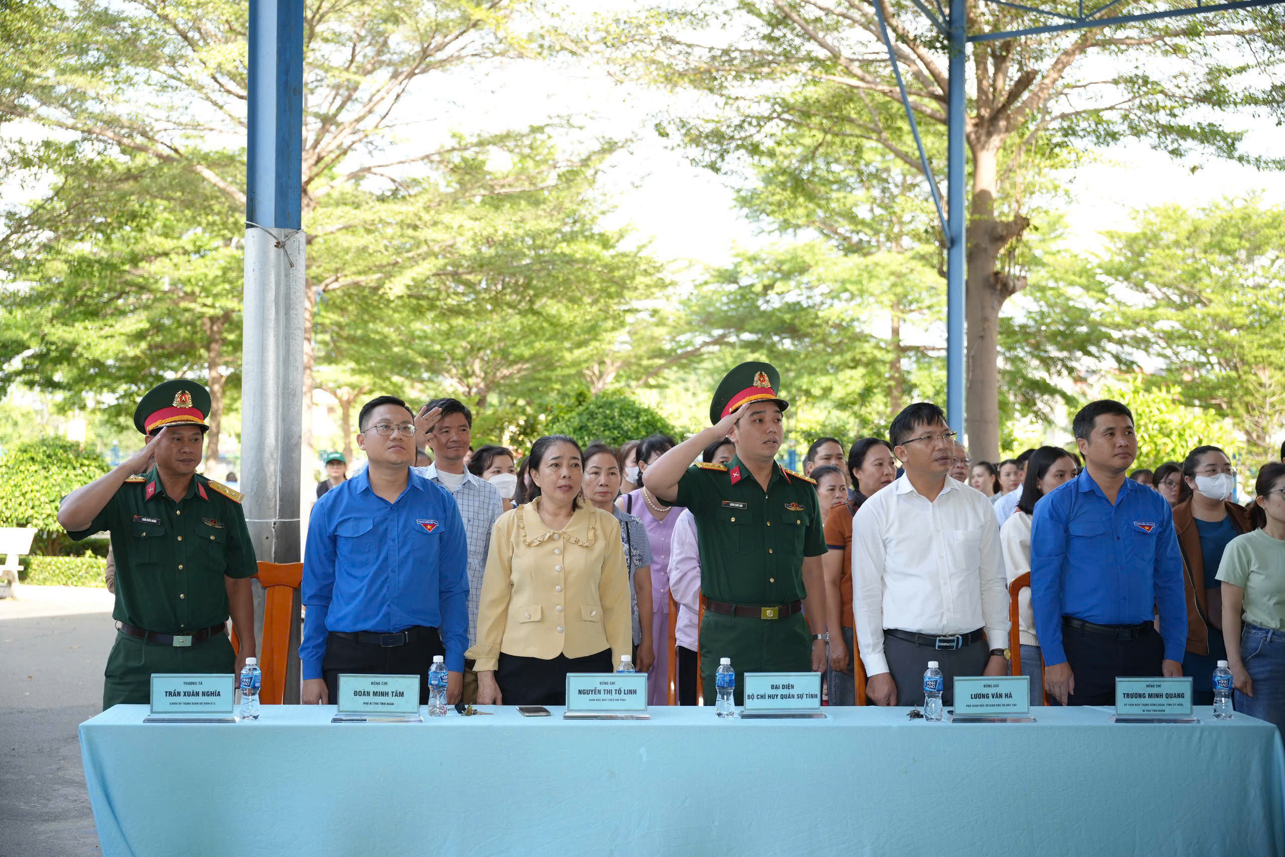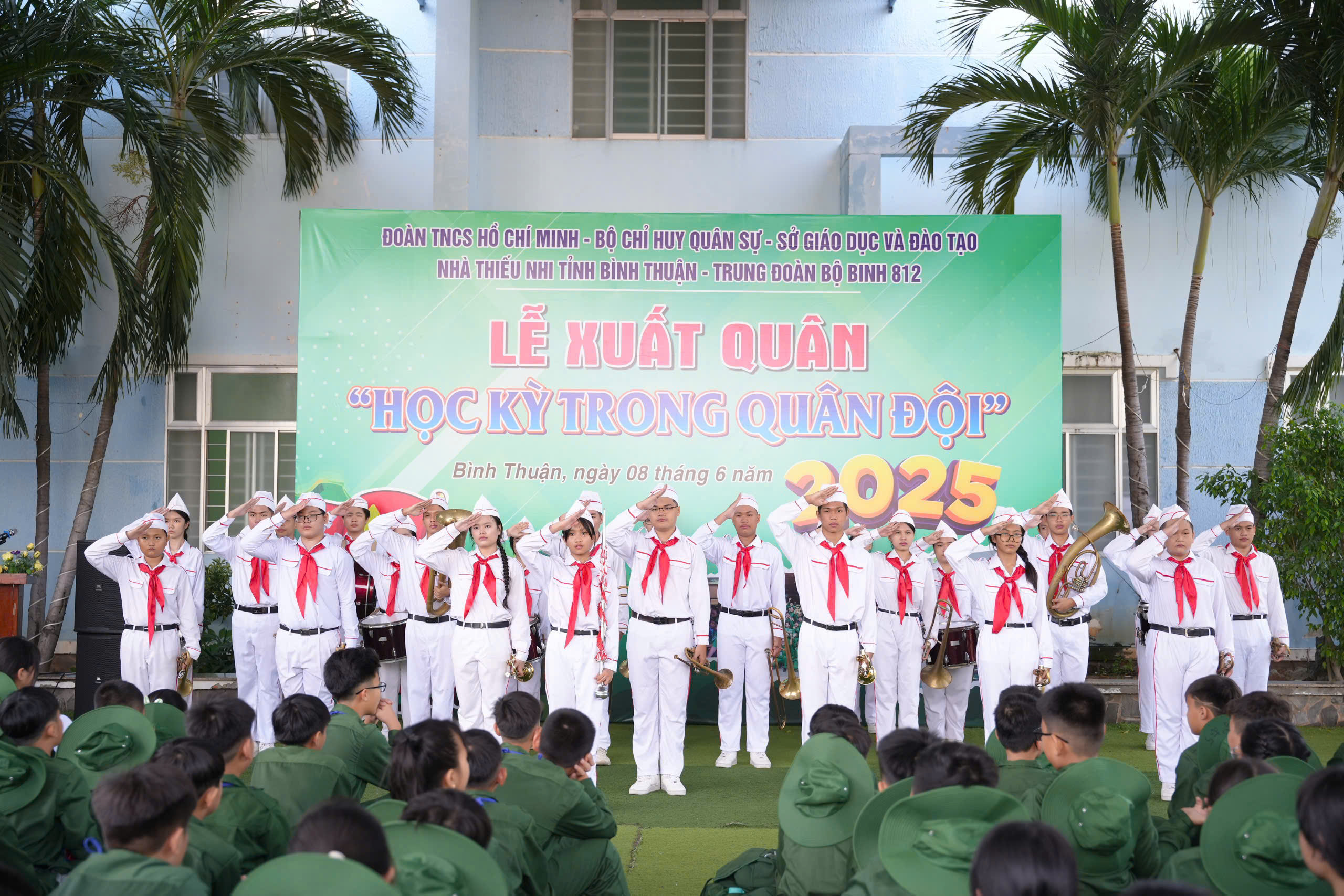Đến dự và động viên cho các em học viên trong buổi lễ xuất quân có đồng chí Lương Văn Hà, Phó Giám đốc Sở Giáo dục và Đào tạo tỉnh; đồng chí Trương Minh Quang, Ủy viên Ban Chấp hành Trung ương Đoàn, Tỉnh ủy viên, Bí thư Tỉnh đoàn; đồng chí Đoàn Minh Tâm, Phó Bí thư Tỉnh đoàn; đồng chí Thượng tá Trần Xuân Nghĩa, Chính ủy Trung đoàn Bộ binh 812; đồng chí Nguyễn Thị Tố Linh, Giám đốc Nhà thiếu nhi tỉnh Bình Thuận.