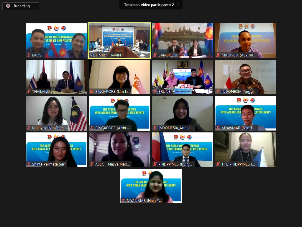 Đại biểu thanh niên các nước và Ban thư ký ASEAN tại cuộc họp trực tuyến