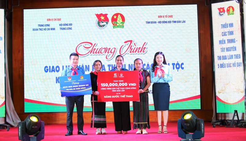 T.Ư Đoàn, Hội đồng Đội T.Ư trao tặng Công trình sân thể thao cộng đồng trị giá 150 triệu đồng và Ngôi nhà Khăn quàng đỏ trị giá 80 triệu đồng cho tỉnh Đắk Lắk