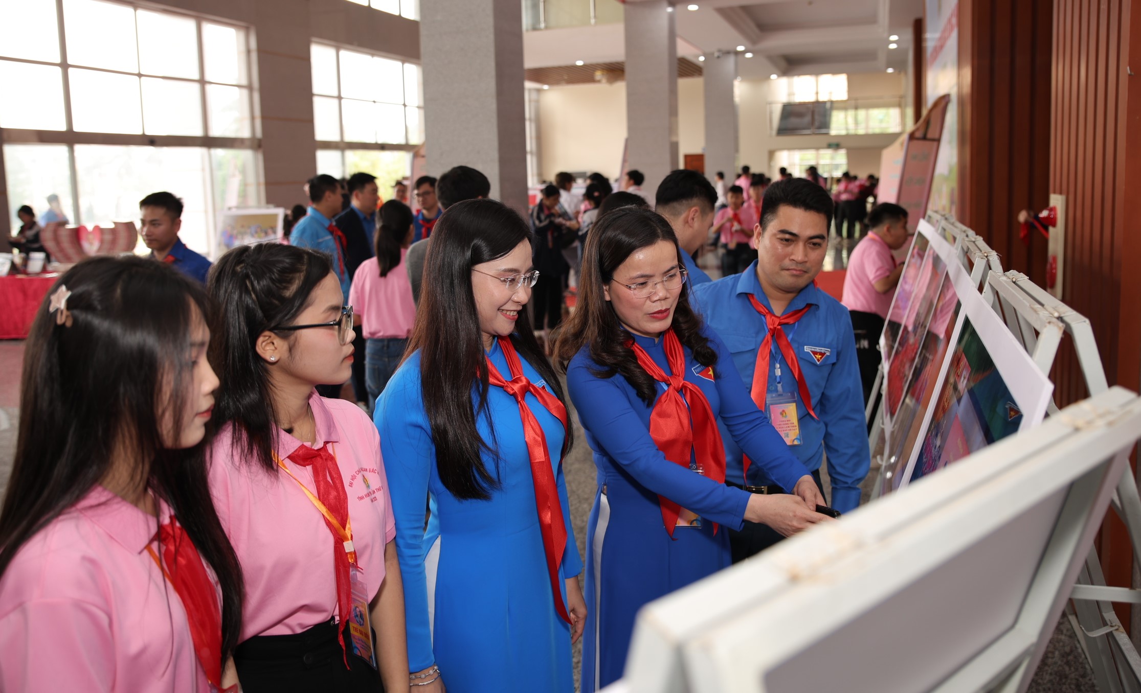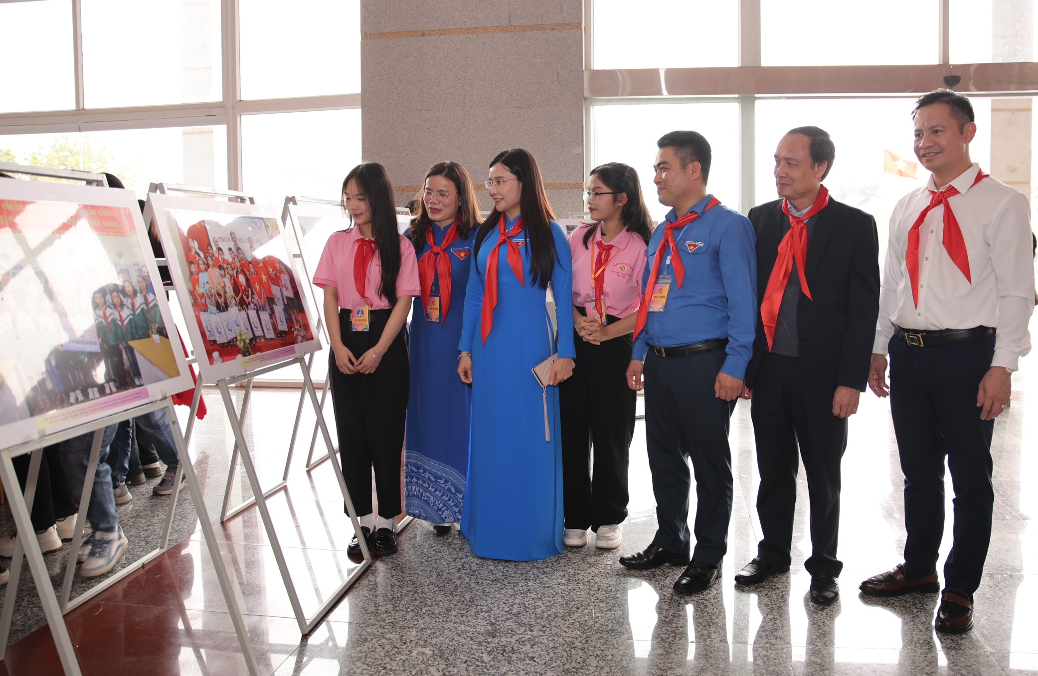 Đồng chí Nguyễn Phạm Duy Trang, Bí thư Trung ương đoàn, Chủ tịch Hội đồng Đội Trung ương tham quan khu vực triển lãm trước thềm Đại hội Cháu ngoan Bác Hồ tỉnh Hưng Yên lần thứ VI, năm 2025
