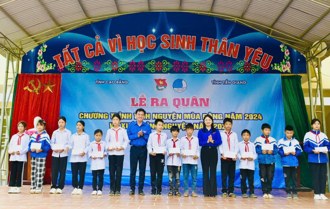 Nhiều phần quà ý nghĩa được Tỉnh đoàn - Hội LHTN Việt Nam tỉnh Cao Bằng và Tỉnh đoàn - Hội LHTN Việt Nam tỉnh Tiền Giang trao tặng cho các em học sinh trường PTDT bán trú THCS Công Trừng