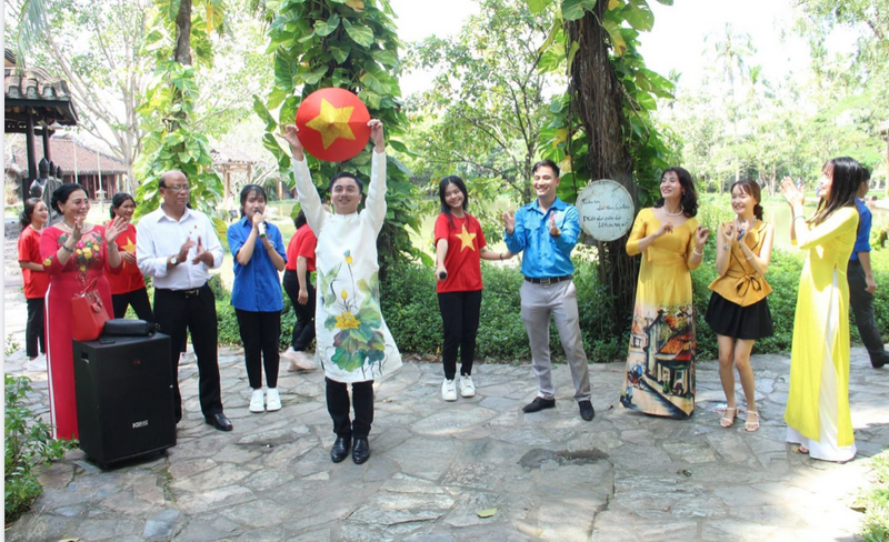 Mặc áo dài có họa tiết hoa sen trên thân áo, đưa 30 bạn trẻ Bình Phước đến dự sự kiện này, Bí thư Tỉnh Đoàn Bình Phước Trần Quốc Duy cảm thấy rất đỗi tự hào và tận dụng mọi cơ hội để giới thiệu về áo dài - biểu tượng văn hóa của dân tộc Việt Nam đến bạn bè quốc tế.