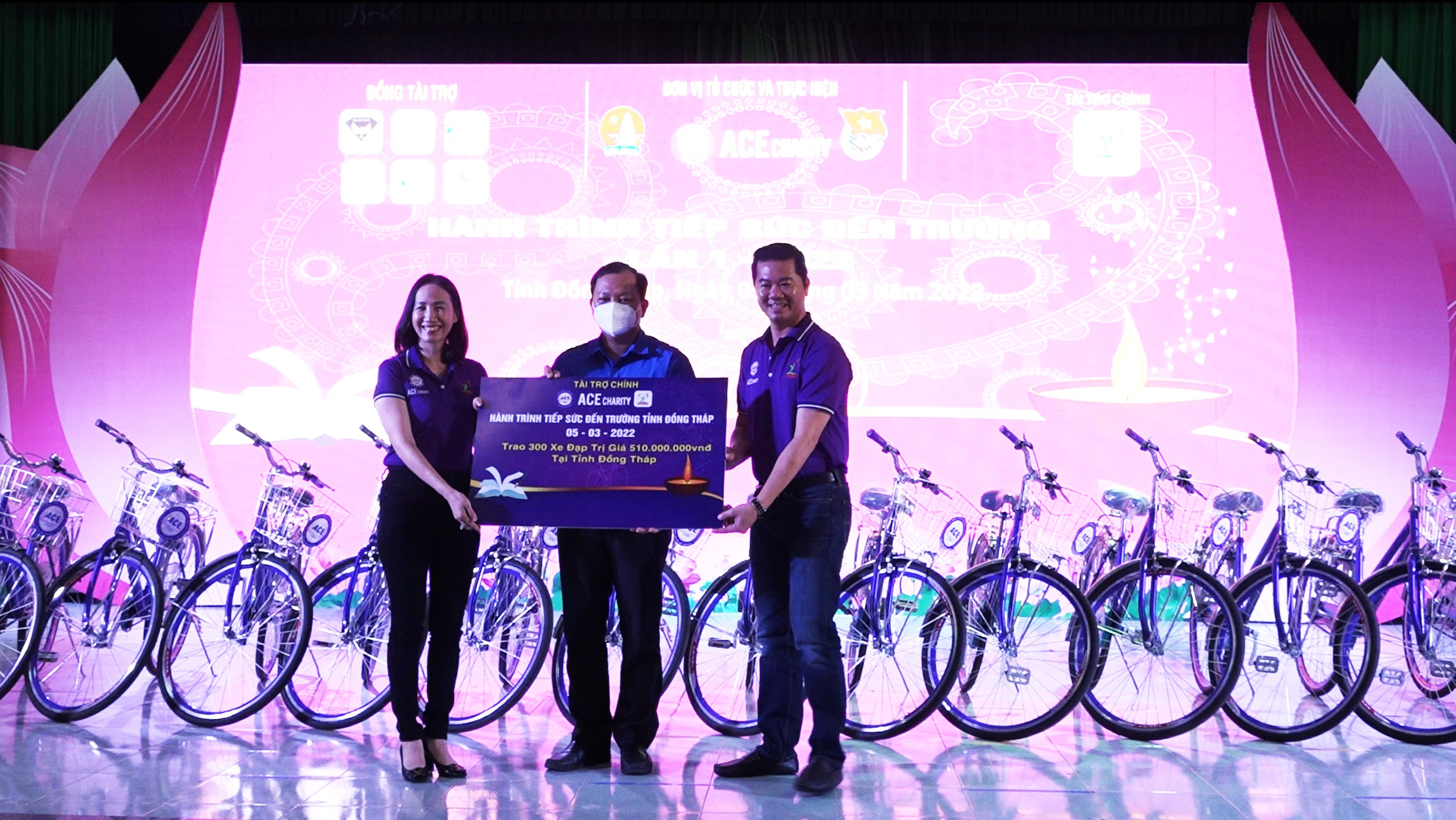 Tại buổi lễ, 300 chiếc xe đạp tím đã được trao cho học sinh của 12 huyện, thành phố trên địa bàn tỉnh. Tổng kinh phí thực hiện là 510 triệu đồng do CLB thiện nguyện ACE Charity tỉnh Đồng Tháp và Công ty Cổ phần Dược phẩm Năm Phát tài trợ.