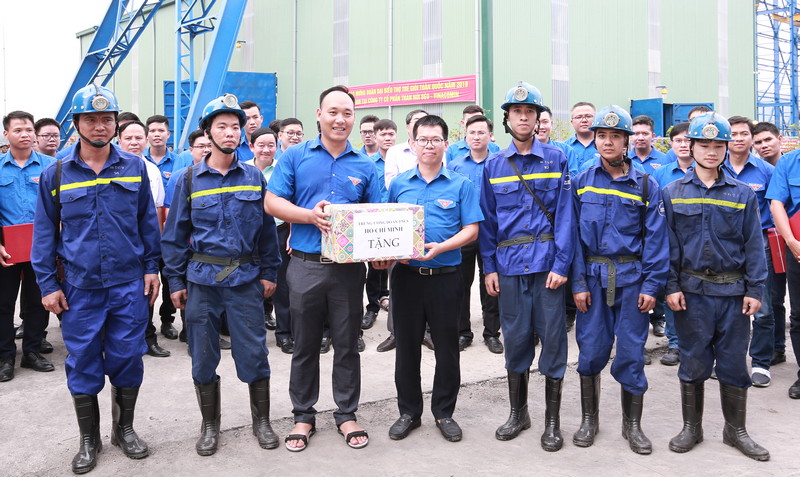 Cũng tại chương trình, Trung ương Đoàn đã tặng quà và 100 mũ bảo hiểm cho thanh niên Công nhân đang làm việc việc tại Công ty Cổ phần Than Núi béo.