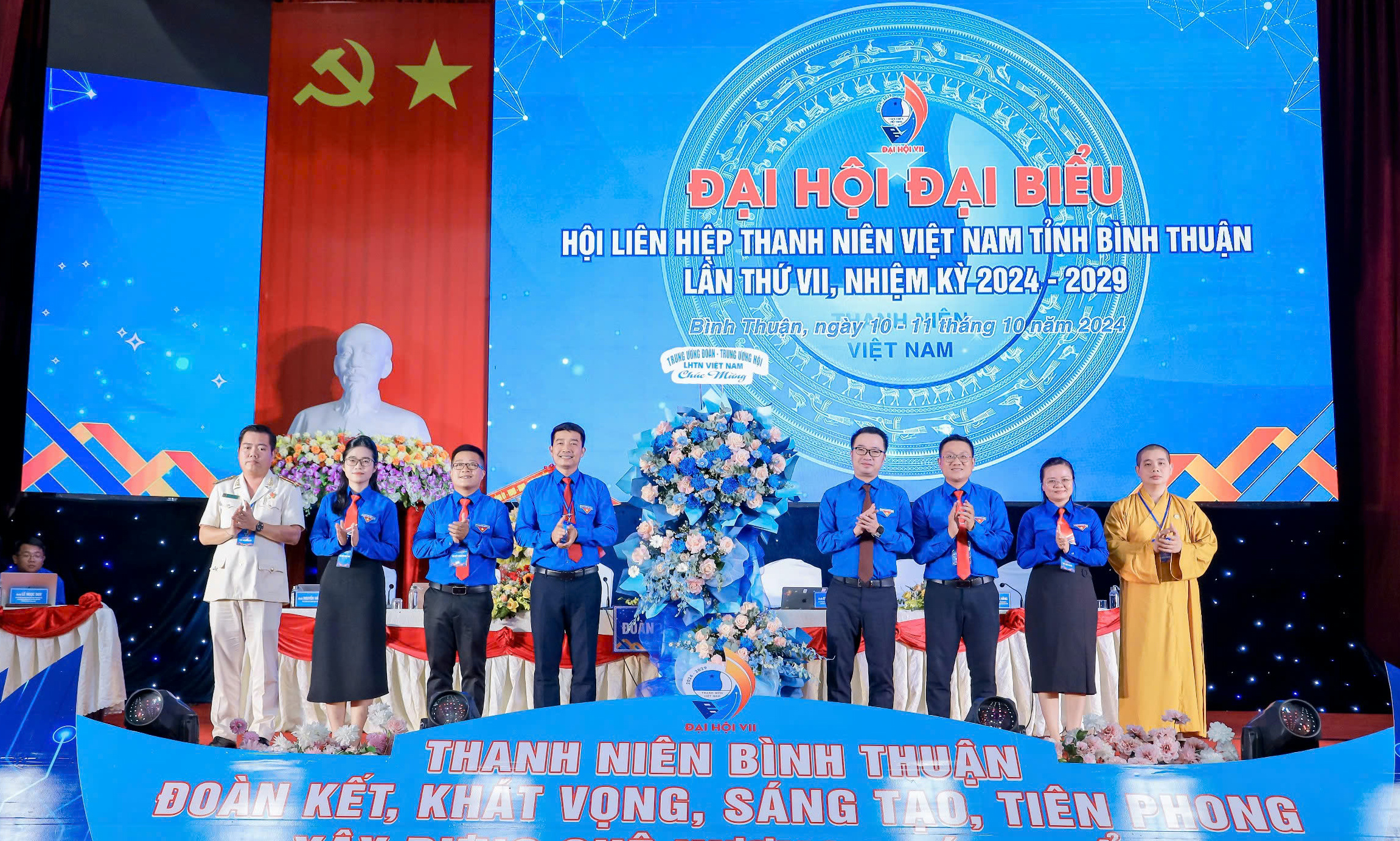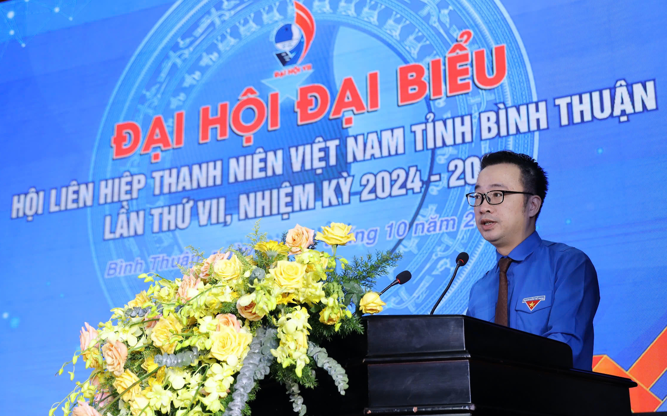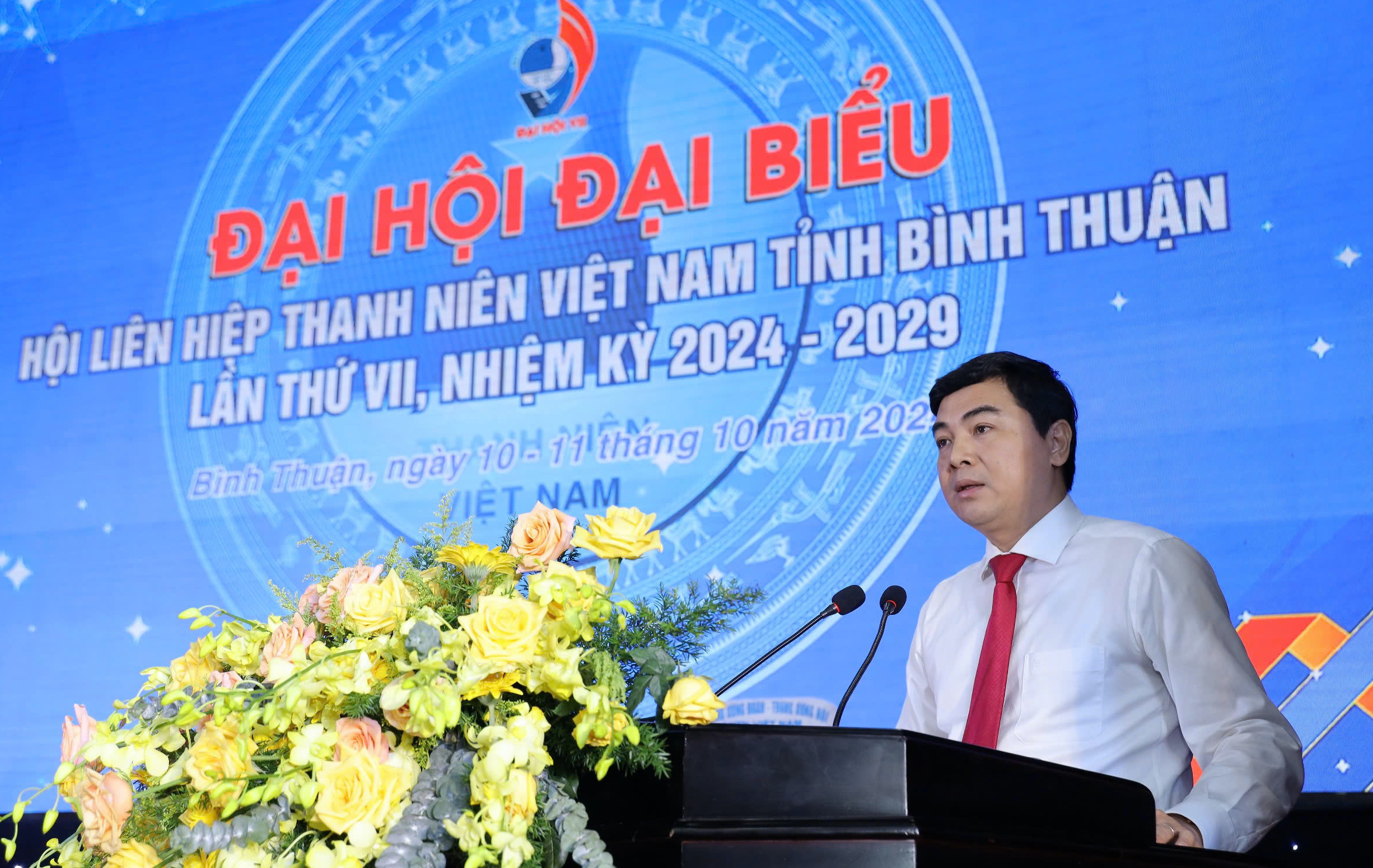 Đồng chí Nguyễn Tường Lâm tặng lẵng hoa của Ban Bí thư Trung ương Đoàn cho Đại hội đại biểu Hội LHTN Việt Nam tỉnh Bình Thuận lần thứ VII, nhiệm kỳ 2024 - 2029.