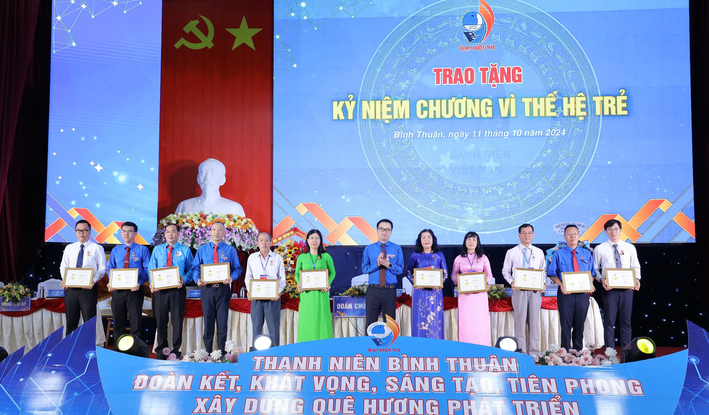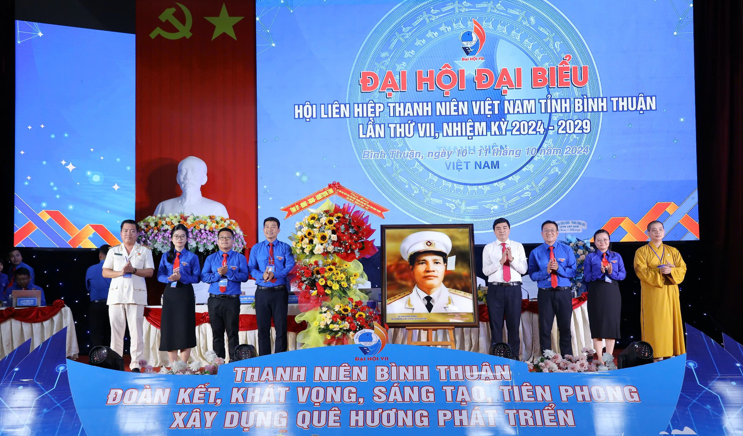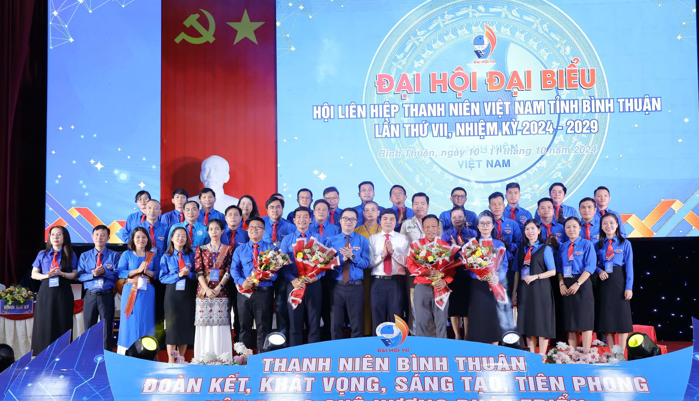 Các đại biểu chụp ảnh lưu niệm tại Đại hội đại biểu Hội LHTN Việt Nam tỉnh Bình Thuận lần thứ VII, nhiệm kỳ 2024 - 2029