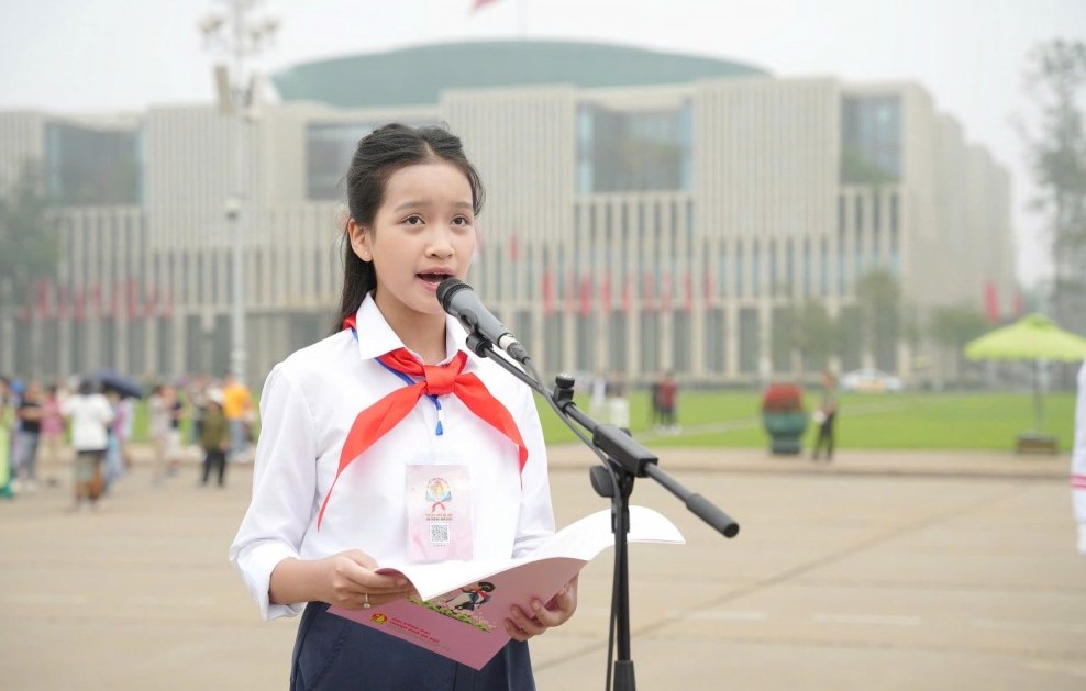 Em Đặng Kim Thiên Kim, Chi đội trưởng lớp 7A15, Liên Đội Phó trường THCS Lê Ngọc Hân quận Hai Bà Trưng (Hà Nội) đại diện cho các đại biểu tham dự Đại hội báo công với Bác về những kết quả đạt được trong phong trào "Thiếu nhi Việt Nam thi đua làm theo 5 điều Bác Hồ dạy". Thiên Kim thay mặt các đại biểu thiếu nhi Thủ đô hứa với Bác: "Chúng cháu sẽ tiếp tục nỗ lực học tập, rèn luyện, phấn đấu trở thành con ngoan, trò giỏi, đội viên tốt, Cháu ngoan Bác Hồ, góp phần xây dựng đất nước Việt Nam giàu mạnh, sánh vai cùng các cường quốc năm châu như Bác hằng mong ước".