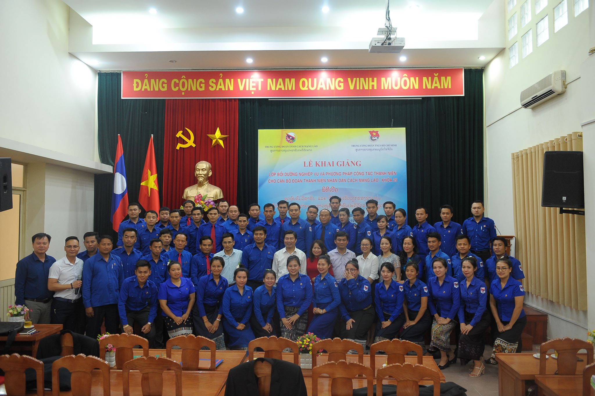 Lớp bồi dưỡng về công tác thanh niên cho cán bộ Đoàn Thanh niên nhân dân Cách mạng Lào năm 2019 - khoá 25 được bế giảng ngày 12/10/2019.