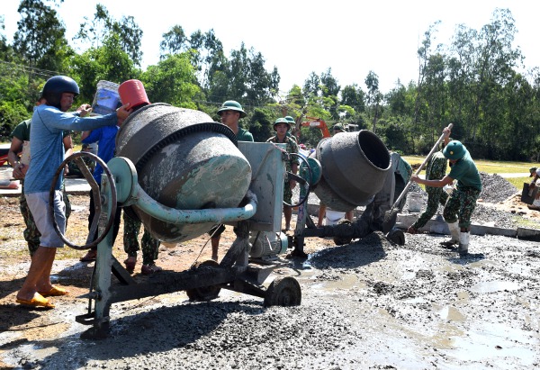 Tham gia đổ bê tông sân Trường Tiểu học An Ninh Đông số 2 - Đội ngũ y, bác sỹ trẻ tham gia khám bệnh cho người dân và ra quân dọn vệ sinh bãi biển xã An Ninh Đông.