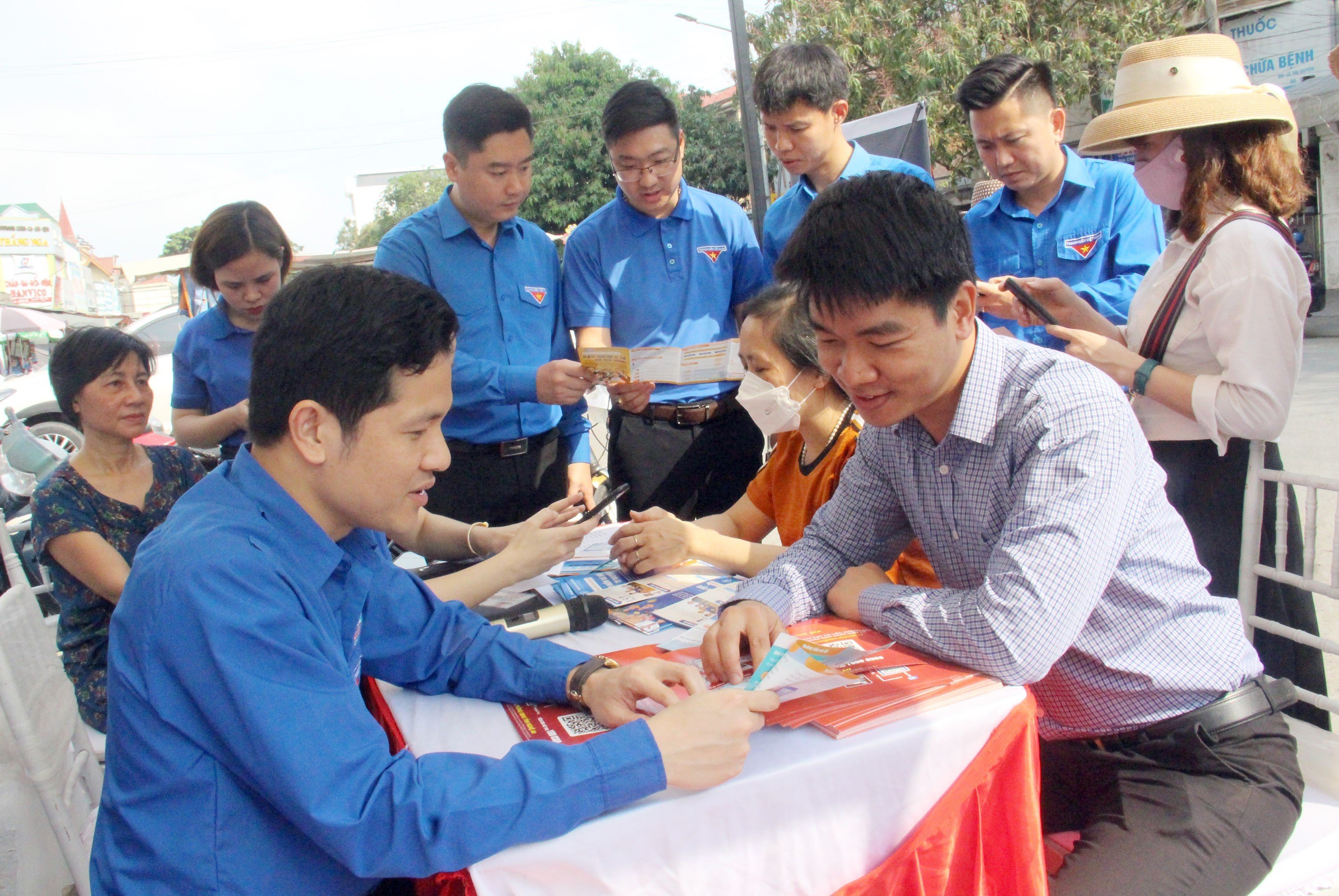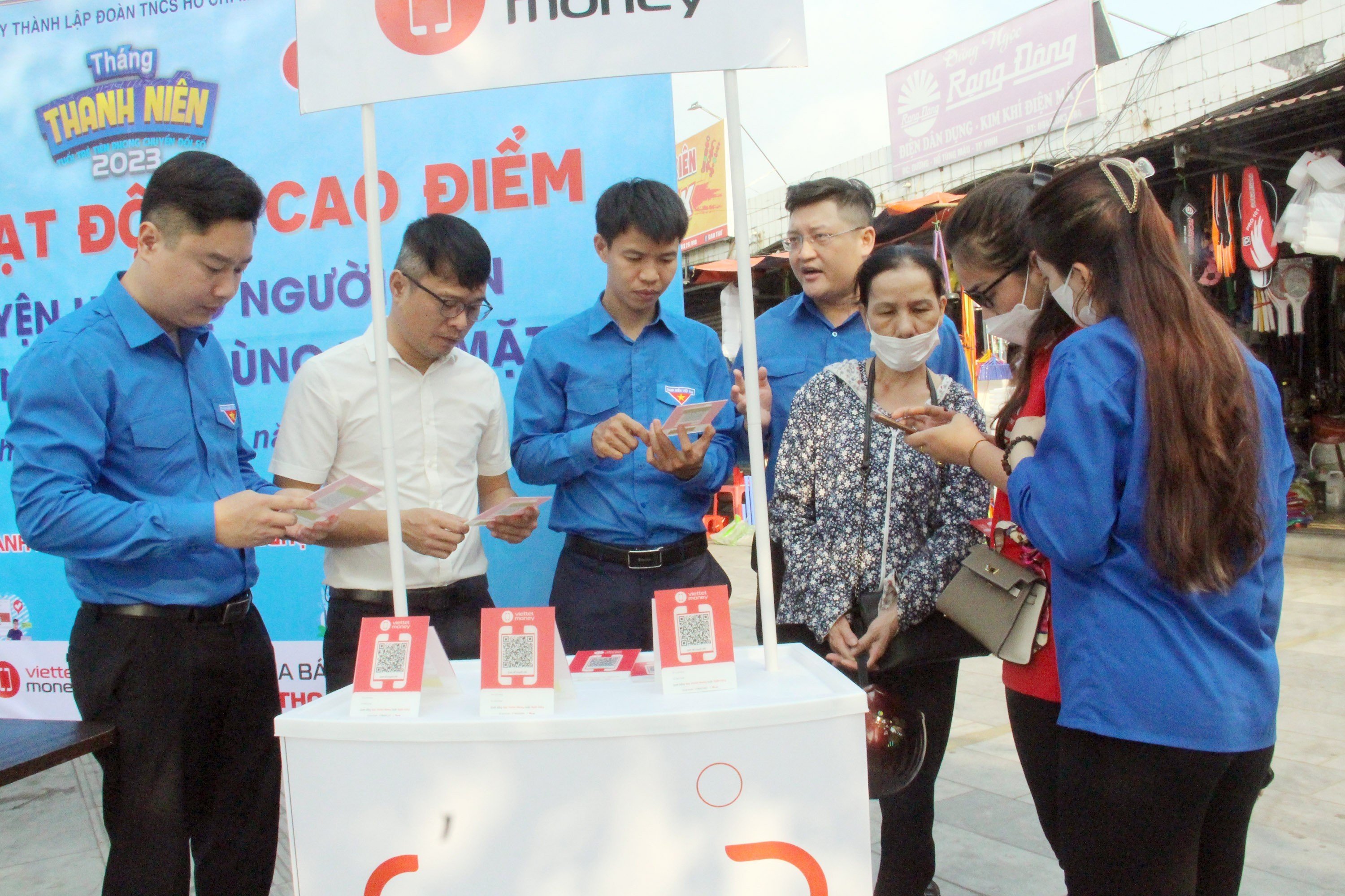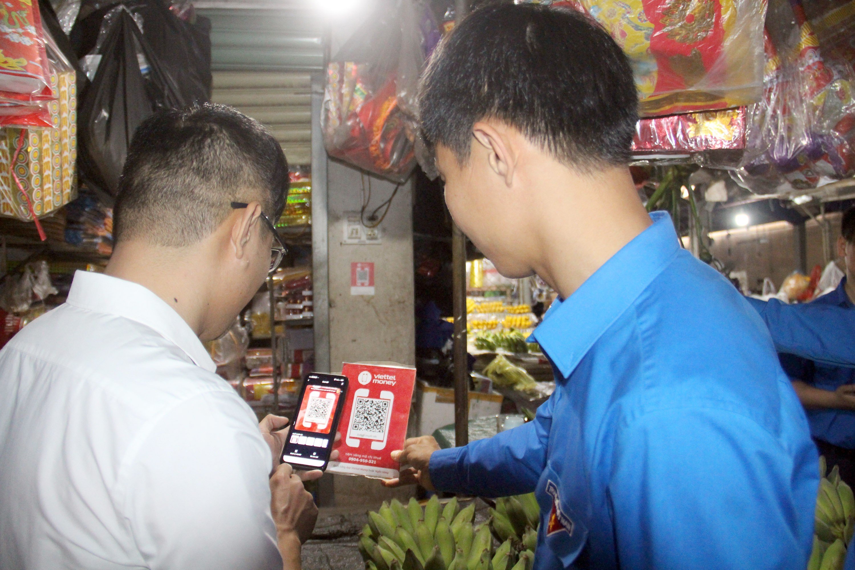 Ngay từ sáng sớm, lực lượng đoàn viên, thanh niên tình nguyện dưới sự chỉ đạo của Thành đoàn Vinh đã có mặt tại nhiều khu vực kinh doanh và chợ trọng điểm trên địa bàn thành phố để hỗ trợ người dân đăng ký tài khoản thanh toán trực tuyến. Hoạt động này được triển khai mạnh mẽ trong Tháng Thanh niên và được mở rộng quy mô vào ngày cao điểm. Ảnh: Thanh Quỳnh |