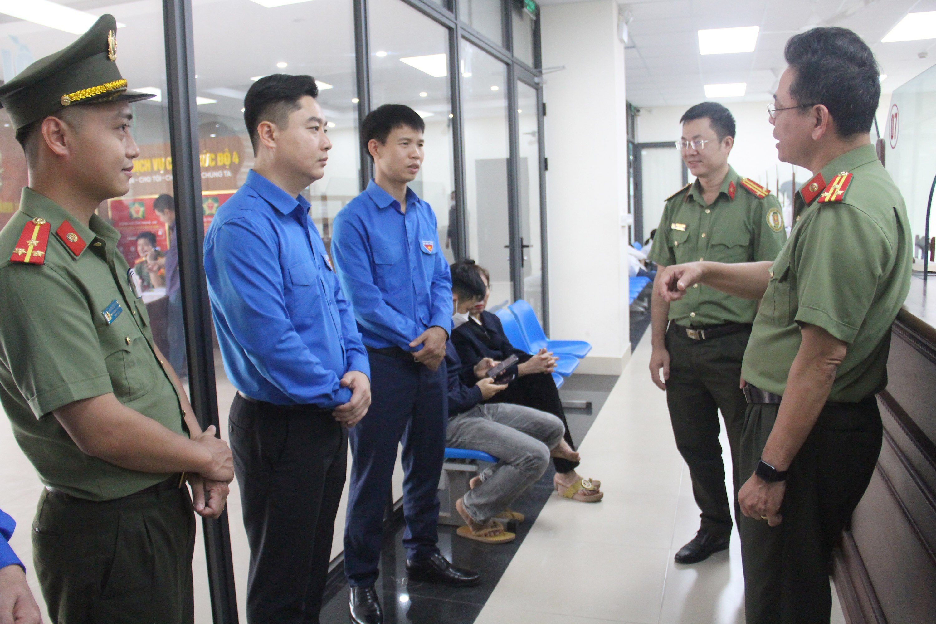 Đồng chí Vũ Minh Thảo - Uỷ viên Ban Chấp hành, Phó Ban Thanh niên nông thôn Trung ương Đoàn và Thường trực Tỉnh đoàn tìm hiểu tình hình hỗ trợ người dân đăng ký định danh điện tử mức 2 tại bộ phận một cửa, Phòng Quản lý xuất nhập cảnh số 2C, đường Trần Huy Liệu, TP. Vinh. Từ đây xây dựng phương án phối hợp tuyên truyền, nâng cao nhận thức và tình nguyện hỗ trợ người dân thực hiện nội dung này một cách hiệu quả trong thời gian tới. Ảnh: Thanh Quỳnh |