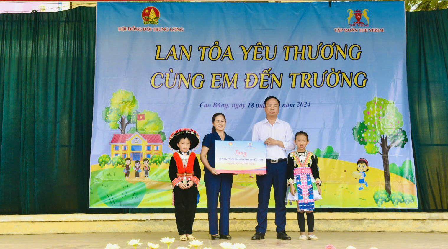 Không chỉ vậy, tại chương trình “Lan tỏa yêu thương - Cùng em đến trường”, Tập đoàn The Vissai và Hội đồng Đội Trung ương còn trao tặng các phần quà ý nghĩa cho toàn bộ 516 học sinh của Trường Tiểu học Mai Long và Trường phổ thông dân tộc bán trú THCS Mai Long, với tổng giá trị lên đến gần 500 triệu đồng.