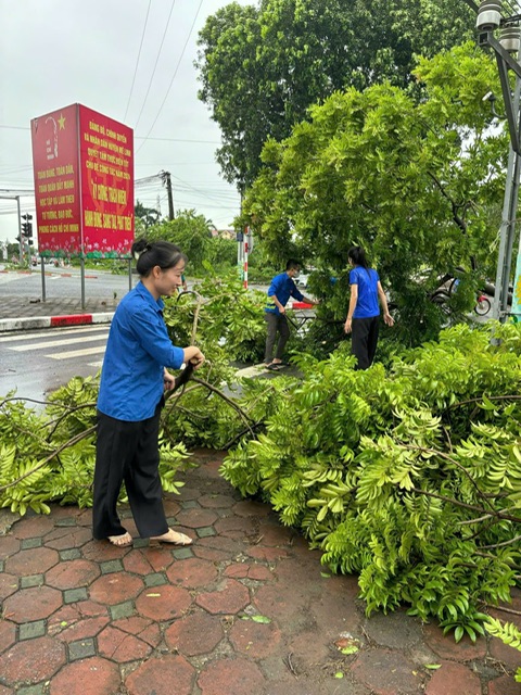 Lực lượng thanh niên tình nguyện Thủ đô nhiệt tình các hoạt động khắc phục hậu quả sau bão.