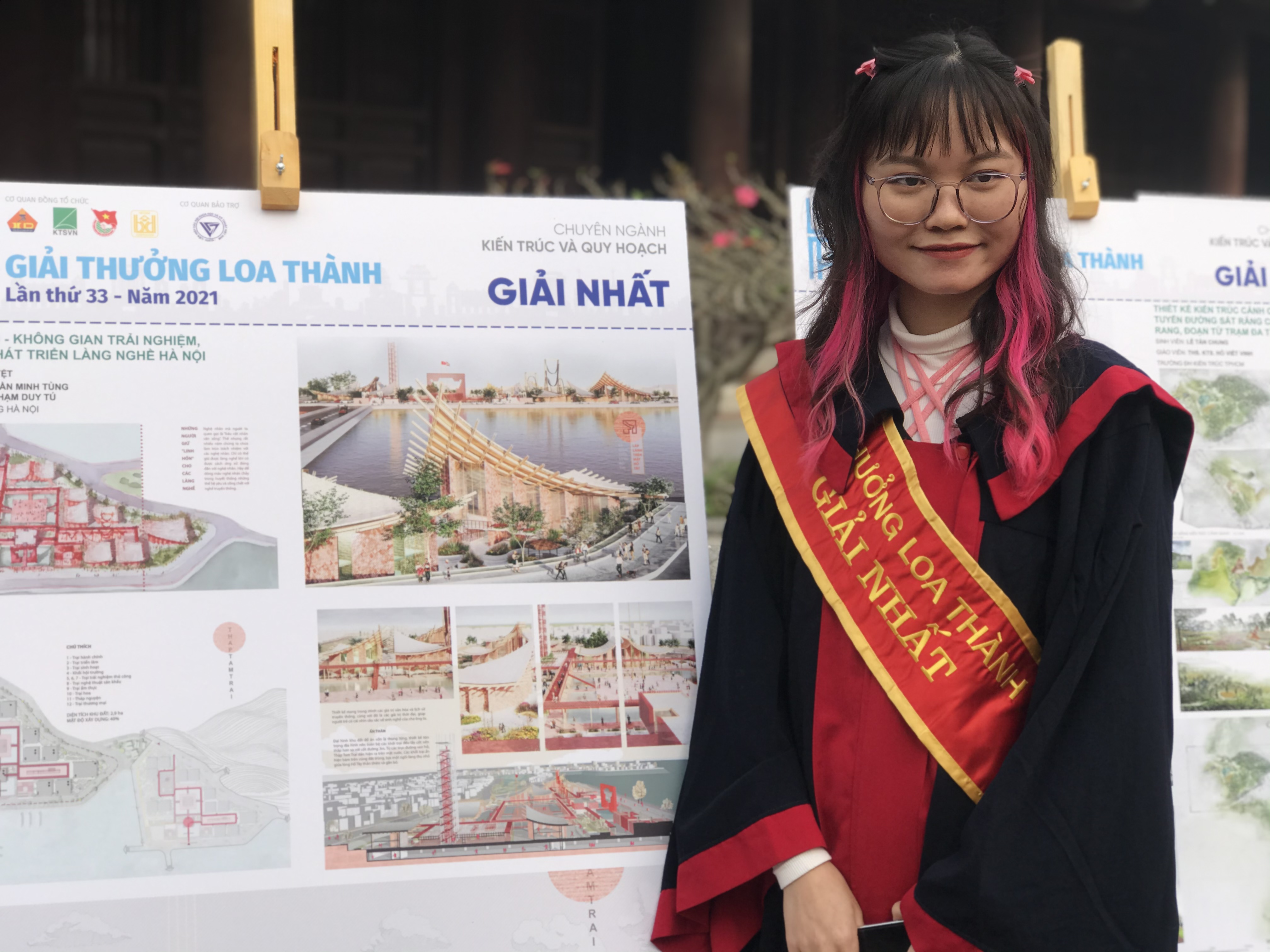 Là 1 trong 5 giải nhất với Đồ án “Thập Tam trại - Không gian trải nghiệm, bảo tồn và phát triển làng nghề Hà Nội”, sinh viên Vi Thị Minh Nguyệt , Trường Đại học Xây dựng Hà Nội chia sẻ: