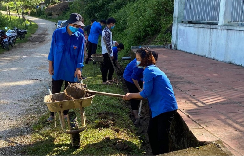 Hội viên thanh niên dọn dẹp cảnh quan Khu Di tích lịch sử cấp Quốc gia Bản Ca