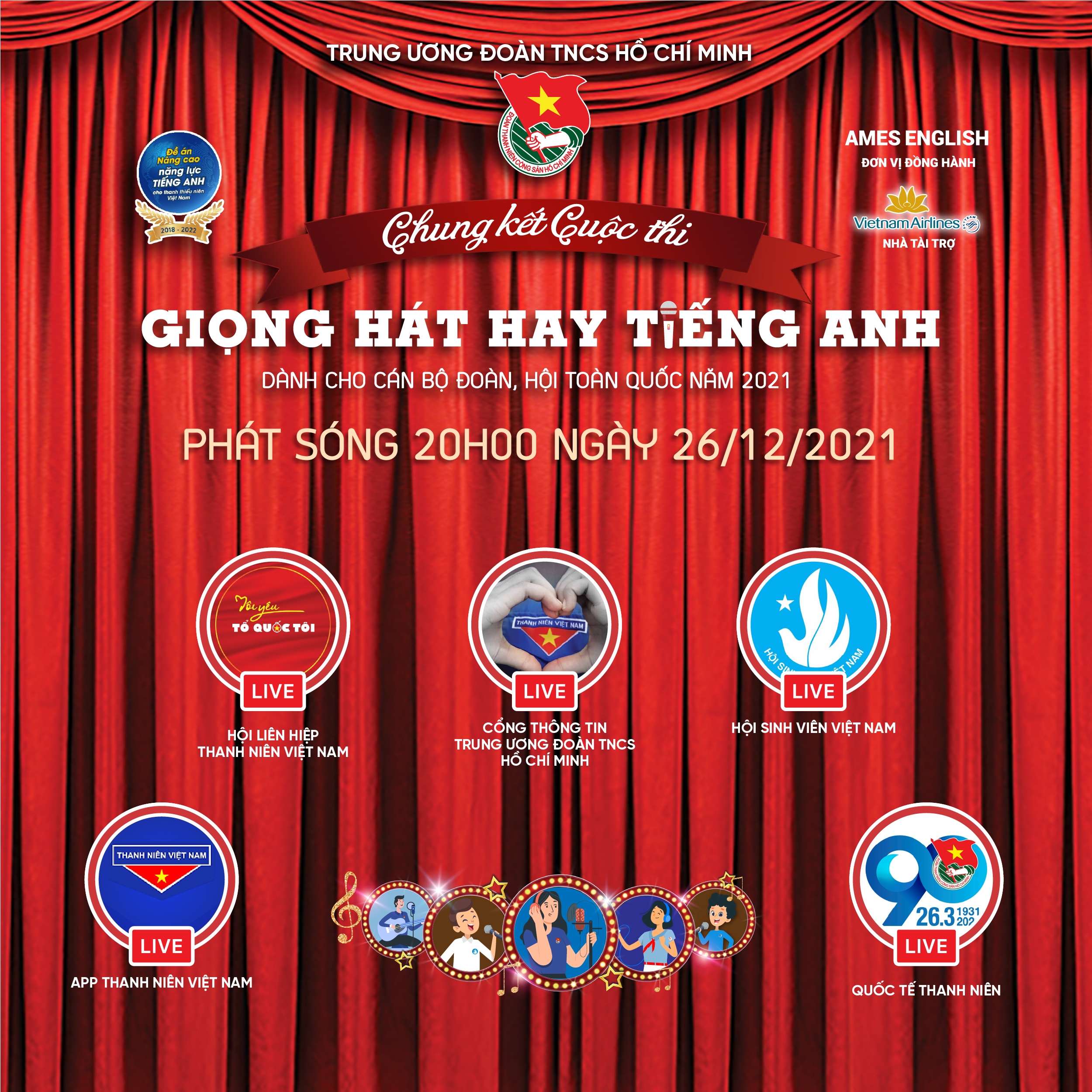 Cuộc thi “Giọng hát hay tiếng Anh dành cho cán bộ Đoàn, Hội toàn quốc năm 2021” do T.Ư Đoàn tổ chức. Đây là một nội dung triển khai Đề án nâng cao năng lực tiếng Anh cho thanh thiếu niên Việt Nam giai đoạn 2018 - 2022, nhằm tạo sân chơi lành mạnh, khơi dậy tinh thần học tập, rèn luyện tiếng Anh và hỗ trợ phát triển kỹ năng hội nhập quốc tế cho cán bộ Đoàn, Hội toàn quốc.