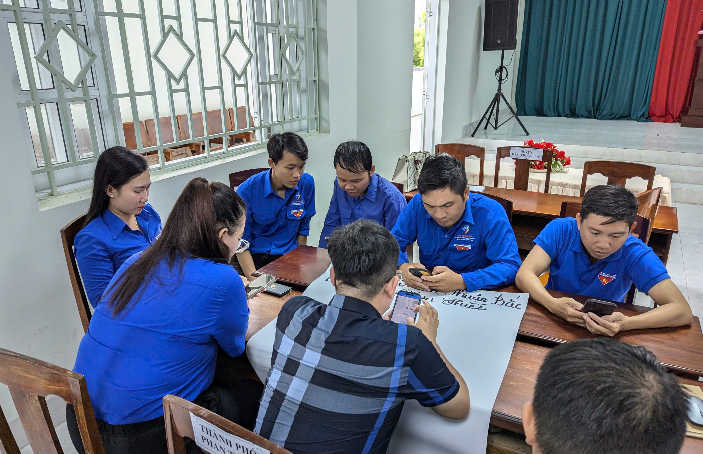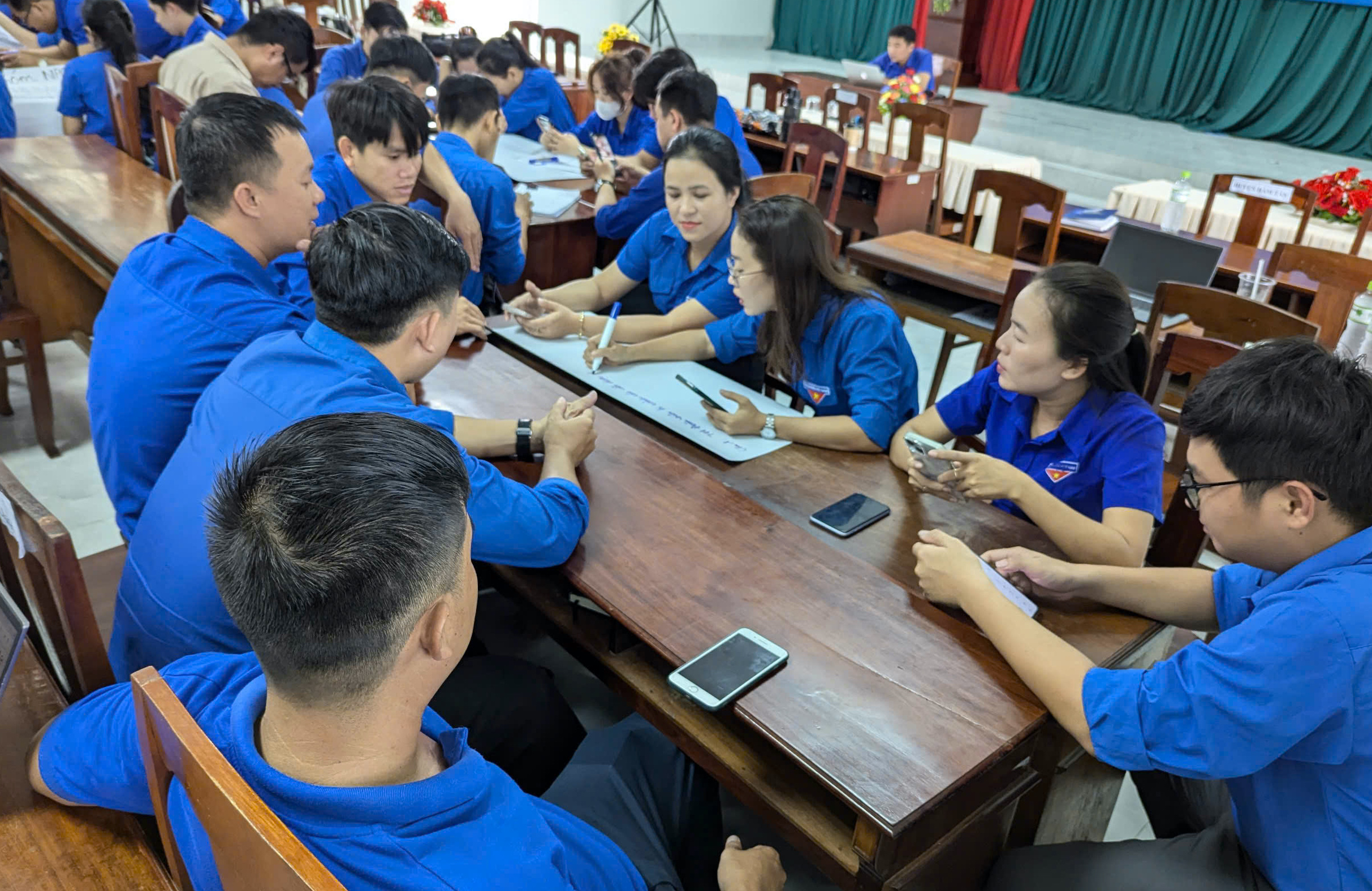 Các cán bộ đoàn cơ sở được chia thành các tổ thảo luận