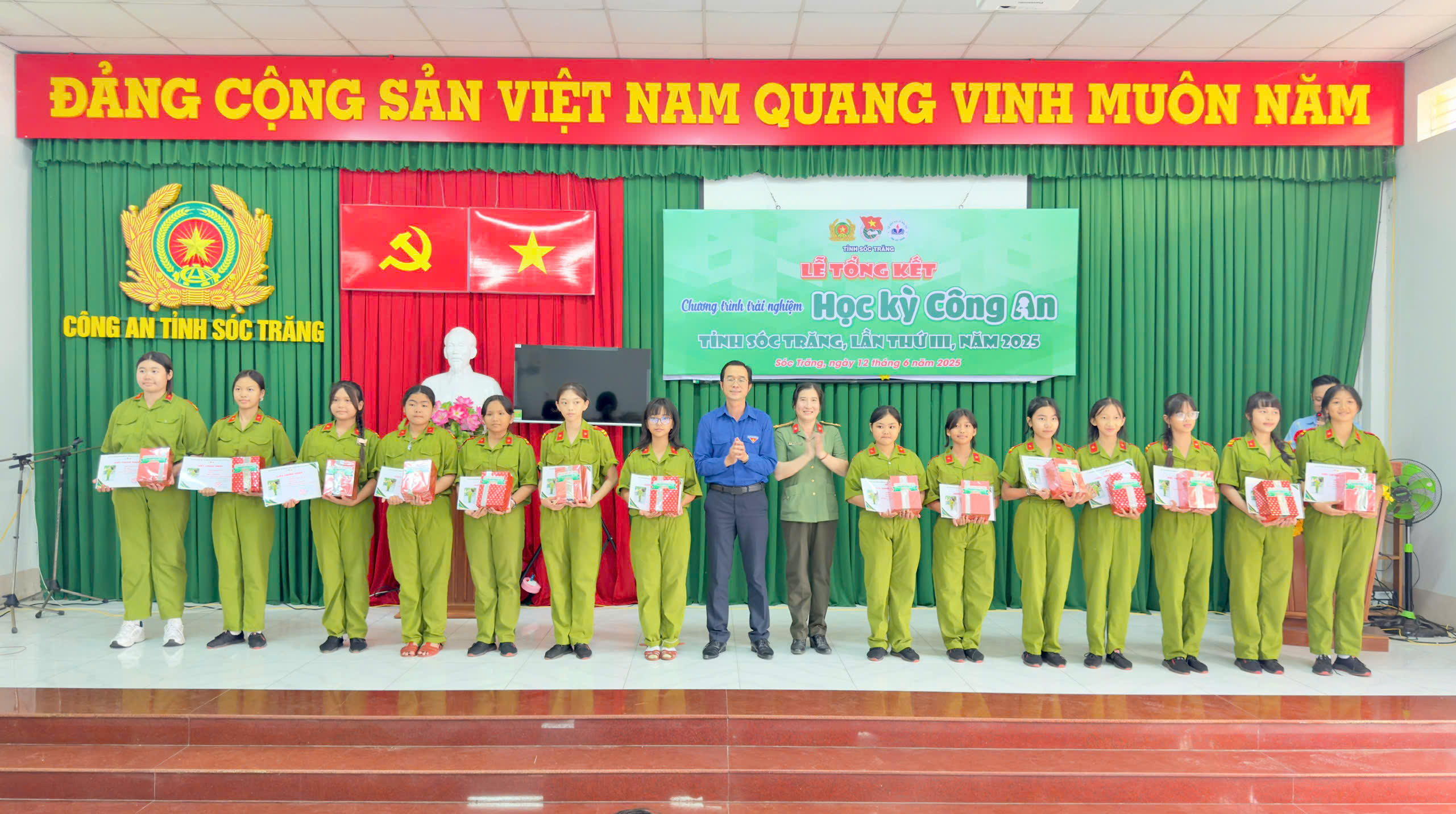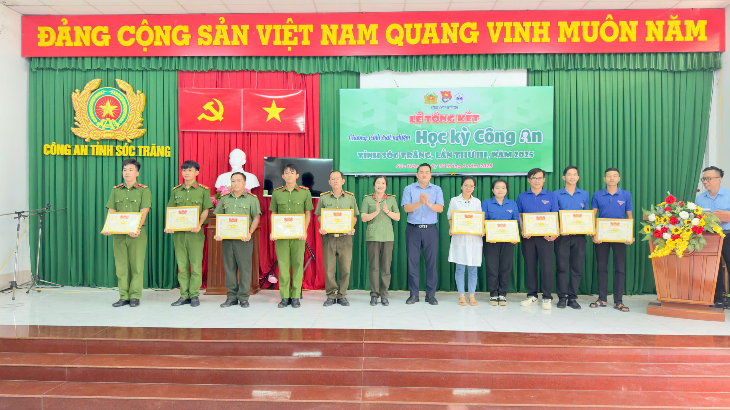 Dịp này, Ban Tổ chức chương trình đã trao giấy chứng nhận hoàn thành chương trình trải nghiệm “Học kỳ Công an” tỉnh Sóc Trăng lần thứ III, năm 2025 cho 81 chiến sĩ nhí, Tỉnh đoàn tặng giấy khen cho 07 chiến sĩ nhí có thành tích xuất sắc và 10 tình nguyện viên, chiến sĩ có thành tích tốt trong quản lý và tổ chức các hoạt động của Chương trình.