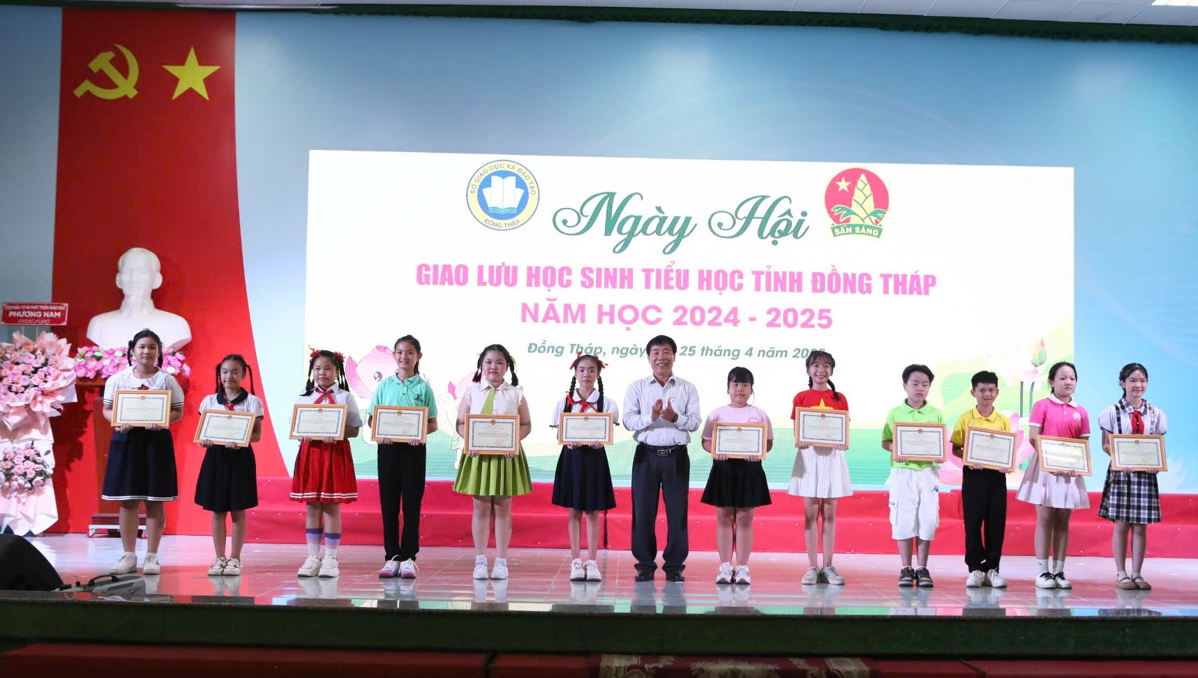 Tham dự chương trình có đồng chí Nguyễn Minh Tâm, Phó Giám đốc Sở Giáo dục và Đào tạo tỉnh Đồng Tháp; đồng chí Nguyễn Thị Thúy Lam, Phó Bí thư thường trực Tỉnh đoàn, Chủ tịch Hội đồng Đội tỉnh; 84 học sinh khối tiểu học xuất sắc đại diện cho 12 huyện, thành phố trên địa bàn tỉnh.