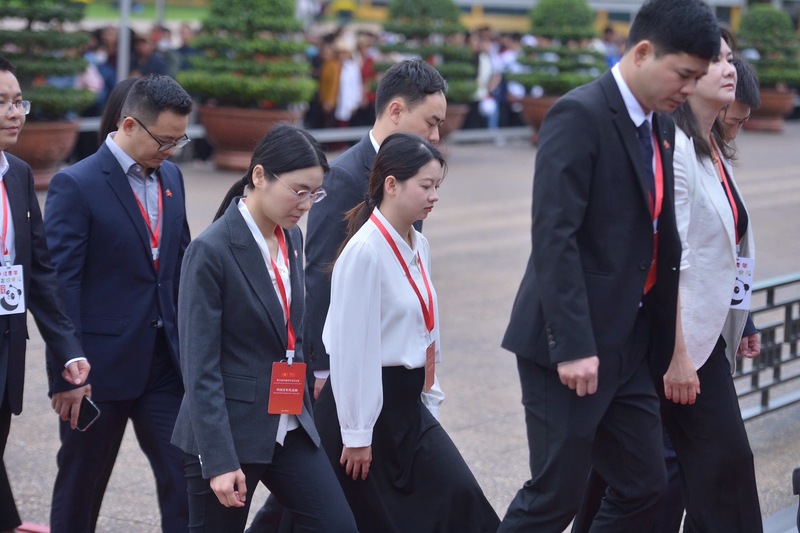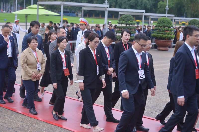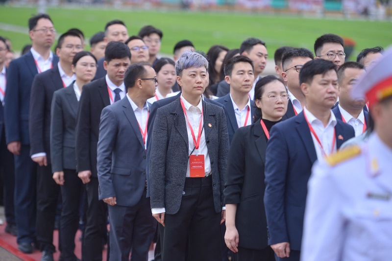 Trong không khí trang nghiêm và thành kính, các đại biểu thanh niên Trung Quốc bày tỏ sự tri ân sâu sắc đối với Chủ tịch Hồ Chí Minh.