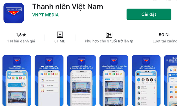 9. Ứng dụng “Thanh niên Việt Nam” (Trung ương Đoàn TNCS Hồ Chí Minh và Tập đoàn Bưu chính Viễn thông Việt Nam)