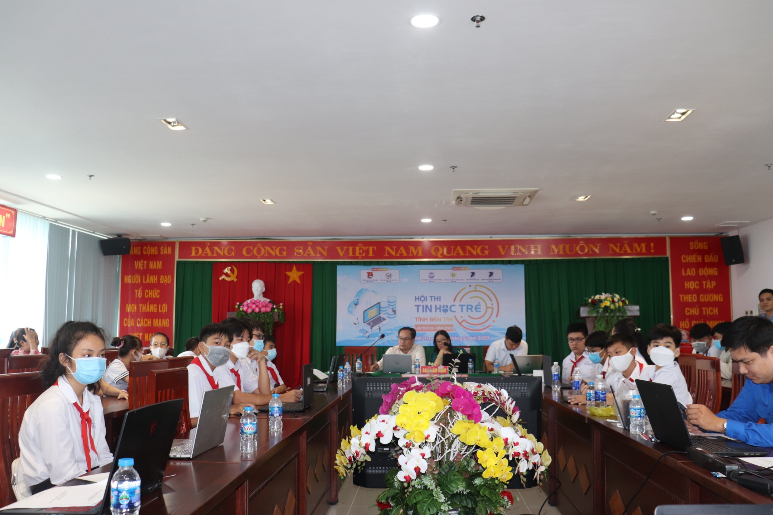 Hội thi Tin học trẻ tỉnh Bến Tre lần thứ XX năm 2023 diễn ra gồm hai bảng thi. Bảng A dành cho khối Tiểu học với 36 thí sinh xuất sắc đại diện cho các huyện, thành phố dự thi, thực hiện hai phần thi trắc nghiệm lý thuyết và thực hành ứng dụng. Các thí sinh thực hiện phần thi trắc nghiệm với câu hỏi kiến thức cơ sở về công nghệ thông tin, tư duy suy luận logic. Phần thi thực hành ứng dụng các thí sử dụng ngôn ngữ lập trình logo để vẽ các hình mẫu cho trước; giải các bài toán cơ bản (+, -, *, /, chia nguyên, chia dư…); sử dụng ngôn ngữ lập trình Scratch, mô phỏng các trò chơi theo gợi ý; dùng PowerPoint tạo bài thuyết trình.