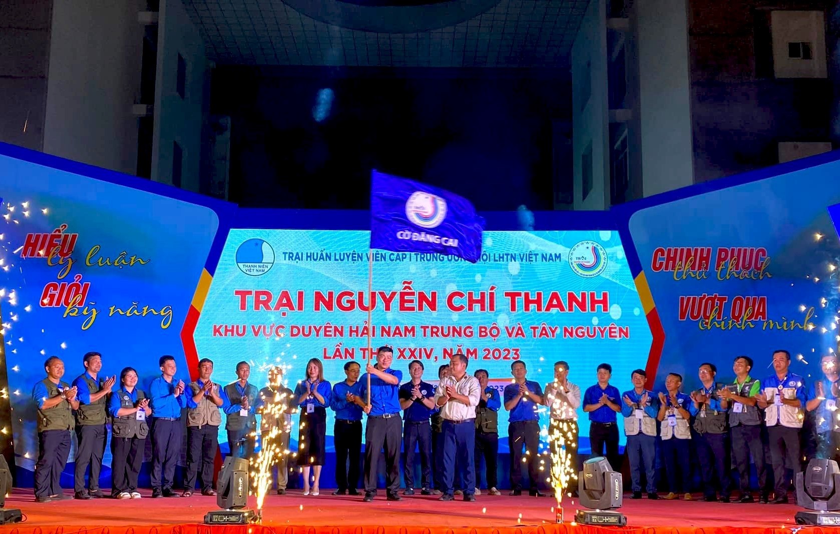 Đại diện Hội LHTN Việt Nam tỉnh Quảng Ngãi, đơn vị đăng cai Trại Nguyễn Chí Thanh lần thứ 24, năm 2023 trao cờ cho đại diện Hội LHTN Việt Nam tỉnh Lâm Đồng - đơn vị đăng cai lần thứ 25, năm 2025.