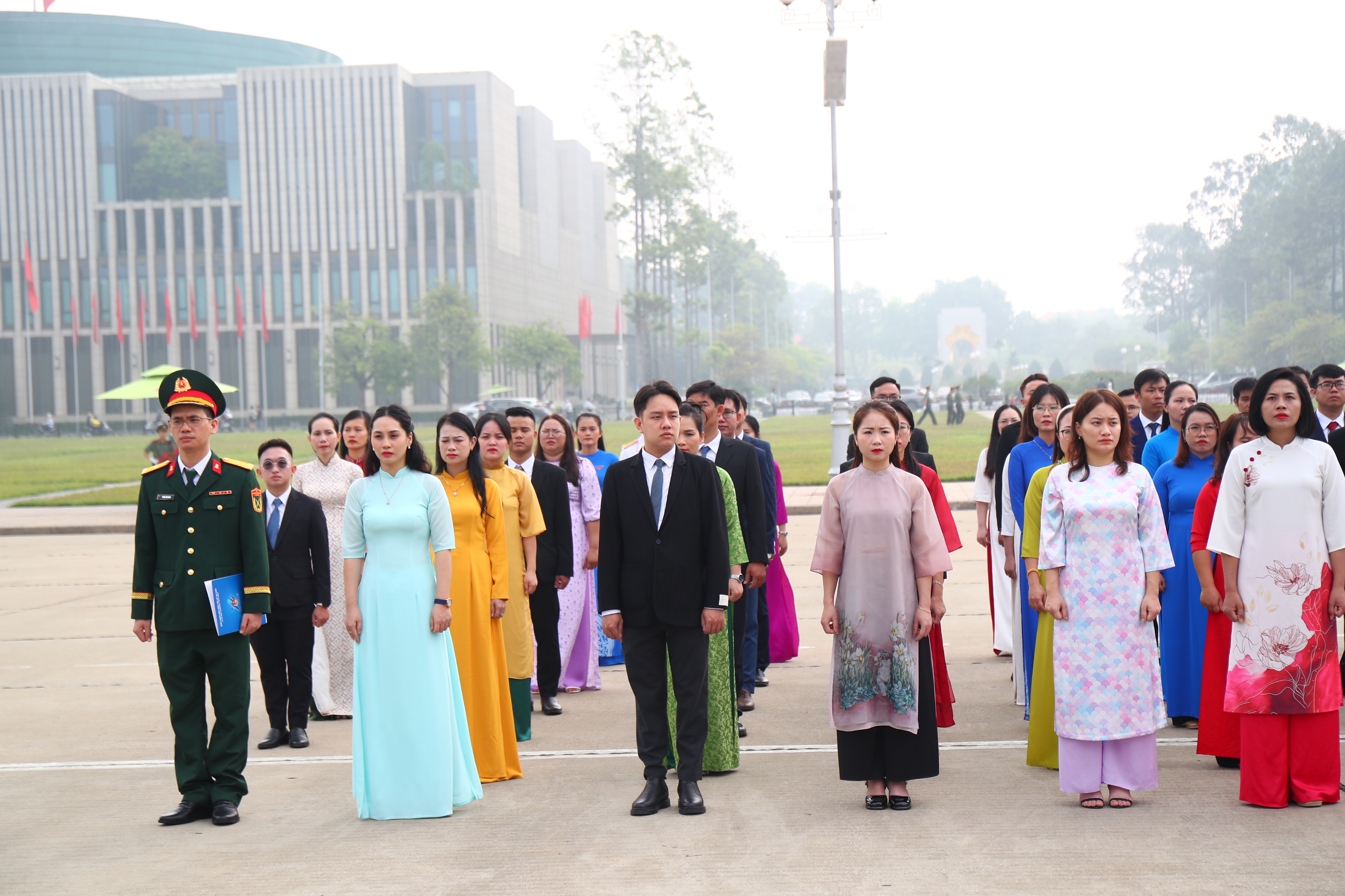 Tại quảng trường Ba Đình lịch sử, Đoàn đại biểu đã thành kính dâng lên Người những bông hoa tươi thắm nhất để bày tỏ lòng biết ơn vô hạn đến công lao to lớn của Chủ tịch Hồ Chí Minh đối với sự nghiệp cách mạng của Đảng và dân tộc, dẫn dắt Đảng ta, nhân dân ta làm nên những thắng lợi vẻ vang.