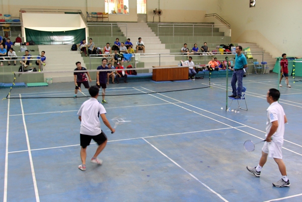 Hơn 300 vận động viên của 18 đơn vị huyện, thị, thành Đoàn và Đoàn trực thuộc tham gia. Trong ảnh các VĐV tranh tài ở môn cầu lông