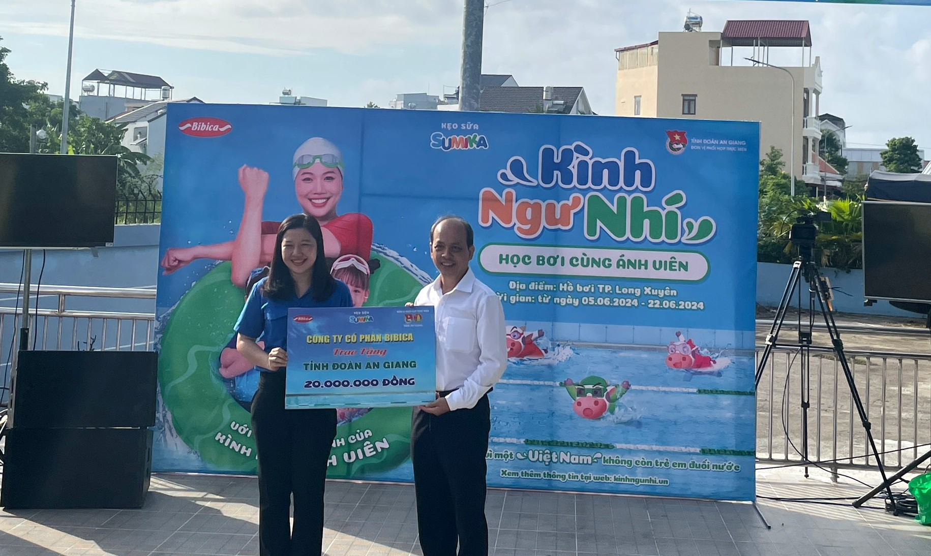 Cũng tại buổi lễ, ông Phan Văn Thiện - Phó Tổng Giám đốc Cty Cổ phần Bibica đã trao bảng tượng trưng nguồn lực tài trợ cho Tỉnh Đoàn An Giang (20 triệu đồng và 02 bể bơi di động), Phòng Giáo dục và Đào tạo thành phố Long Xuyên (10 triệu đồng), Đoàn Cơ sở Sở Văn hóa - Thể thao và Du lịch (5 triệu đồng) để thực hiện các hoạt động phục vụ cho thiếu nhi trong mùa hè 2024.