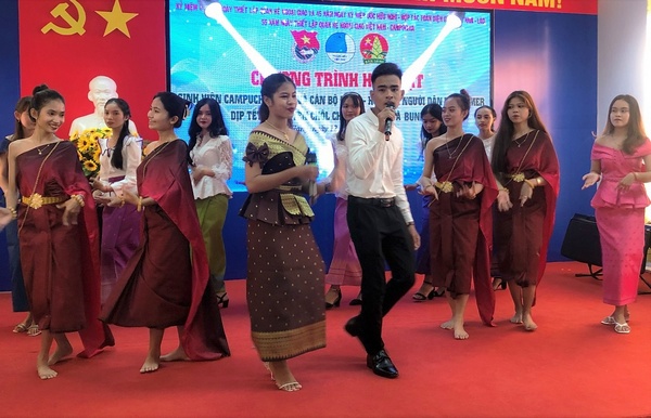 Trong không khí rộn ràng chào đón tết cổ truyền, các bạn sinh viên Campuchia, Lào và cán bộ Đoàn - Hội - Đội người dân tộc Khmer đã cùng nhau ca hát, chia sẻ những phong tục tết cổ truyền của từng nước trong buổi họp mặt.