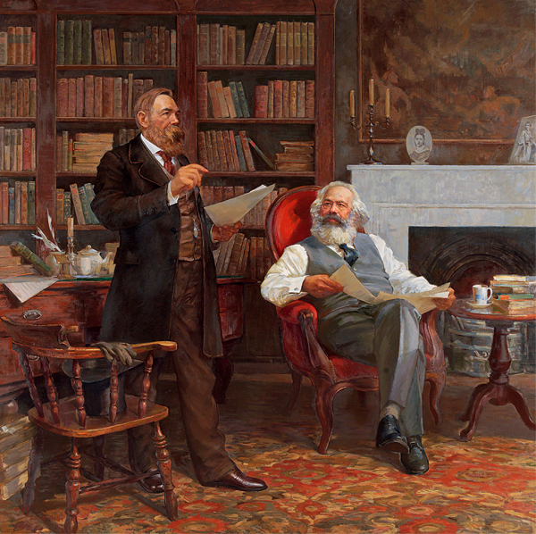 “…Mác đã giúp họ bằng cách chứng minh rằng tất cả mọi khái niệm pháp lý, chính trị, triết học, tôn giáo và những khái niệm tương tự của con người, xét đến cùng do những điều kiện kinh tế của đời sống con người, phương thức sản xuất và sự trao đổi sản phẩm của họ quyết định. Bằng cách đó, thế giới quan đáp ứng những điều kiện của đời sống và cuộc đấu tranh của giai cấp vô sản đã được đề ra; chỉ có sự thiếu những ảo tưởng trong đầu óc của công nhân mới có thể phù hợp với tình trạng họ không có tài sản. Và quan điểm vô sản đó hiện nay đang thực hiện cuộc diễu hành thắng lợi trên toàn thế giới”