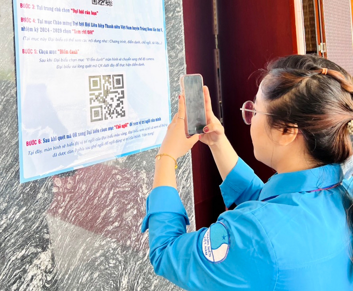 Đại biểu quét mã QR để nhận tài liệu Đại hội