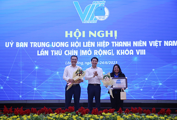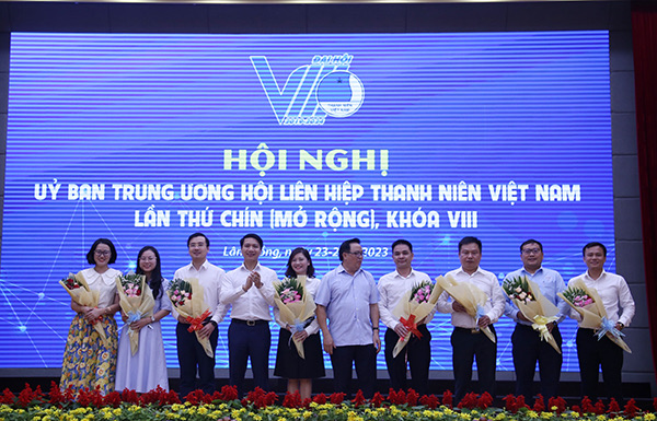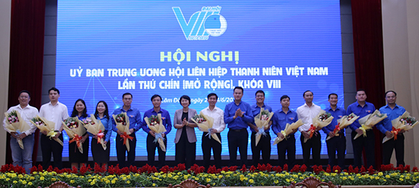 Tặng hoa chúc mừng các anh, chị được hiệp thường vào Đoàn Chủ tịch Uỷ ban Trung ương Hội LHTN Việt Nam khoá VIII.