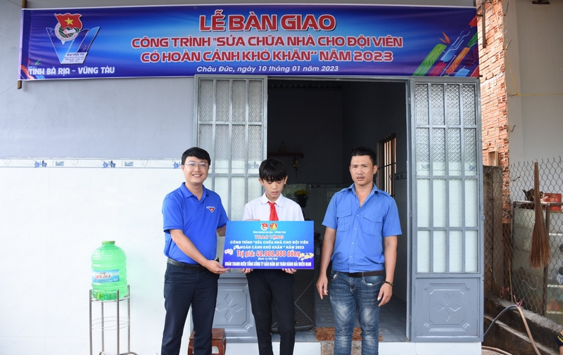 Công trình được sửa chữa là ngôi nhà cấp 4 gồm các hạng mục: hoàn thiện mái hiên, thay tôn mới, lát tường, thay sửa nhà vệ sinh…với tổng trị giá 40 triệu đồng do Đoàn Thanh niên Tổng công ty Bảo đảm an toàn Hàng hải miền Nam tài trợ.