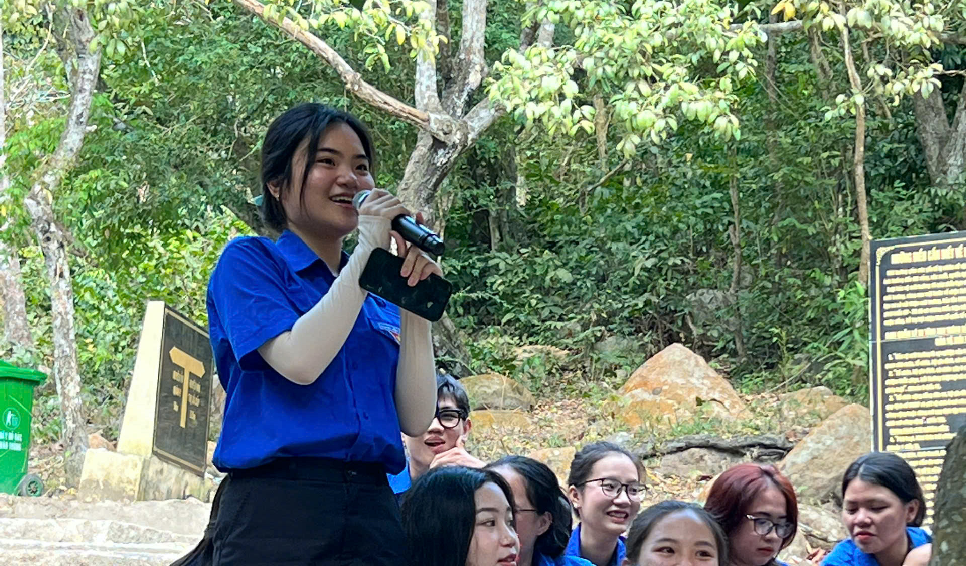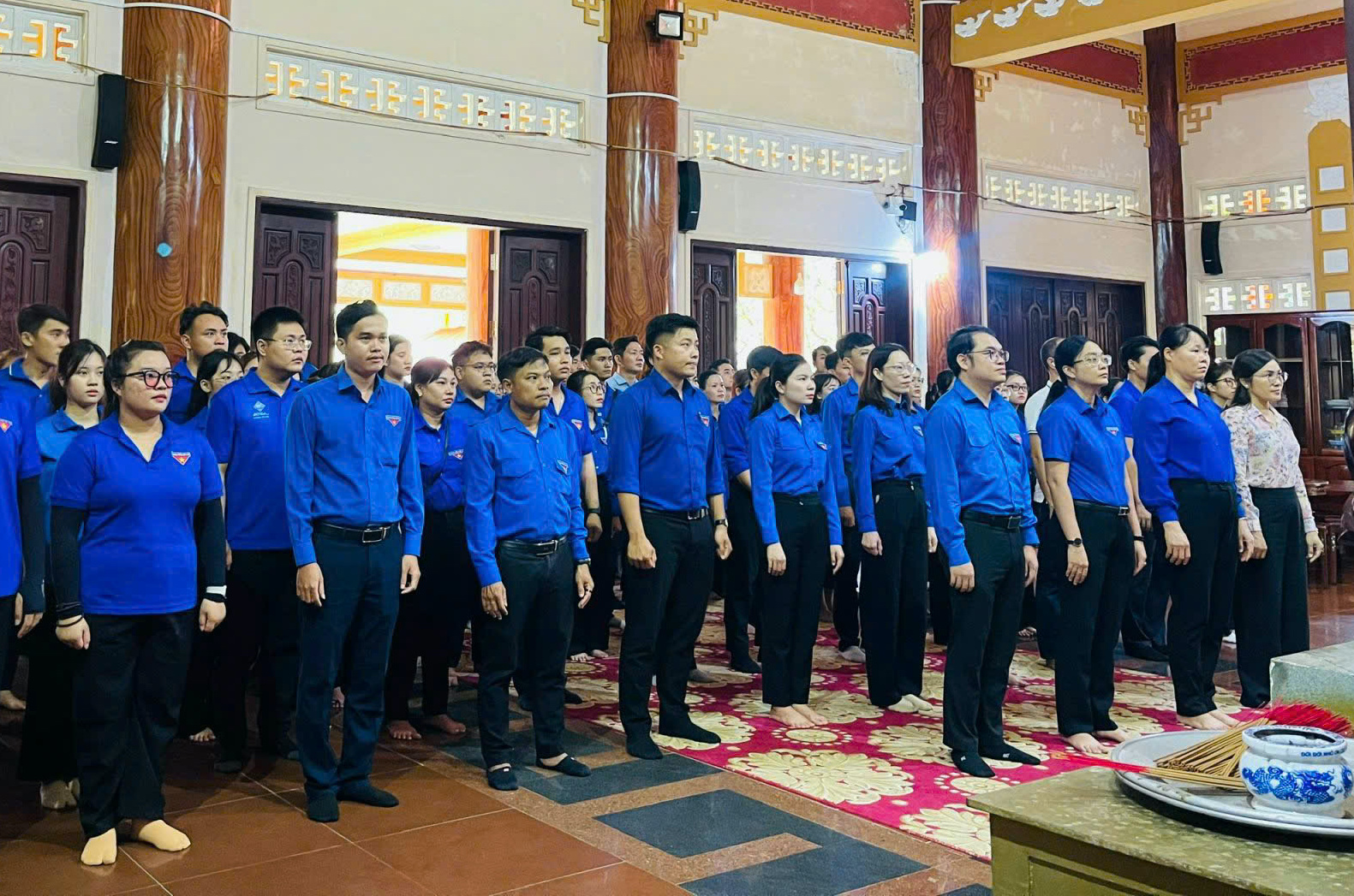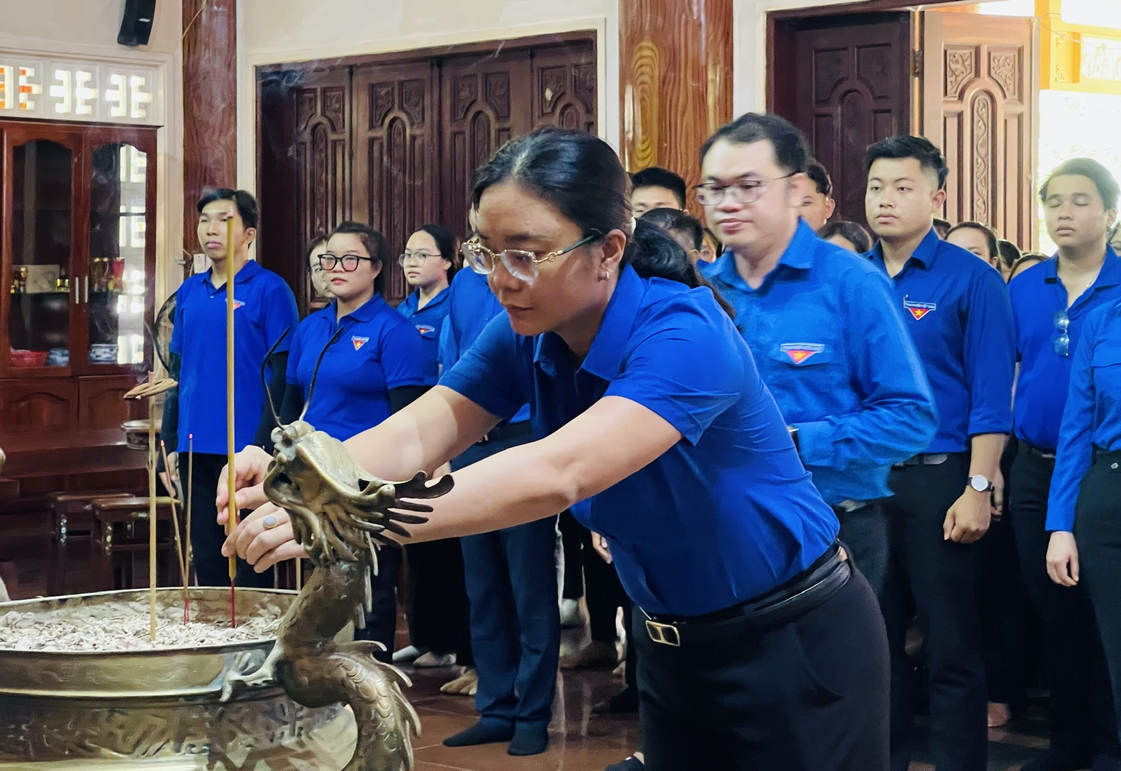 Các bạn đoàn viên, thanh niên dâng hương, dâng hoa tại đền thờ liệt sĩ Khu di tích Minh Đạm