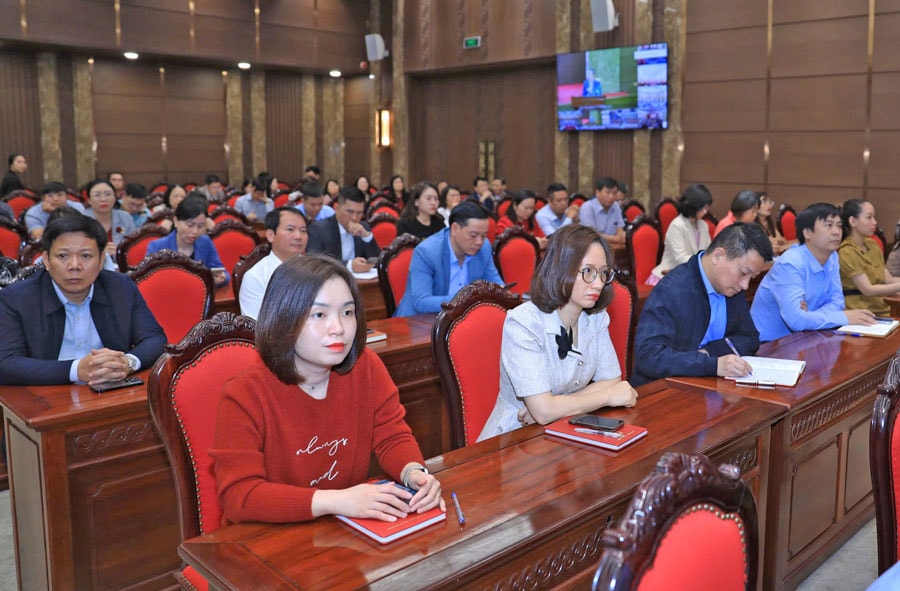 Các đại biểu dự Hội nghị quán triệt, triển khai định hướng lớn về kỷ nguyên mới - kỷ nguyên vươn mình của dân tộc do Ban Thường vụ Thành ủy Hà Nội tổ chức, tháng 12-2024. Ảnh: Quang Thái