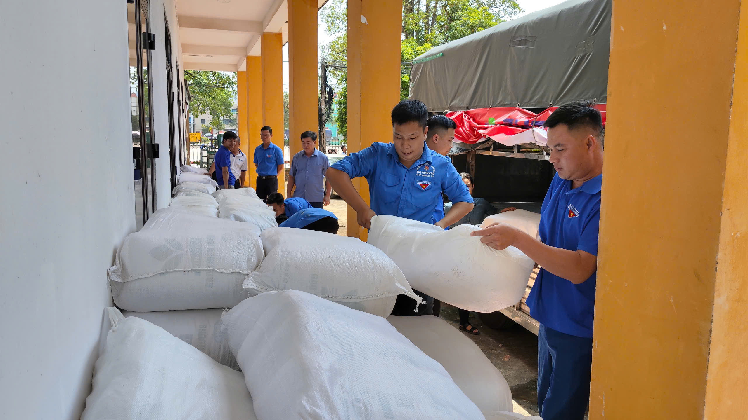 Đoàn viên, thanh niên tham gia hỗ trợ vận chuyển quà tặng