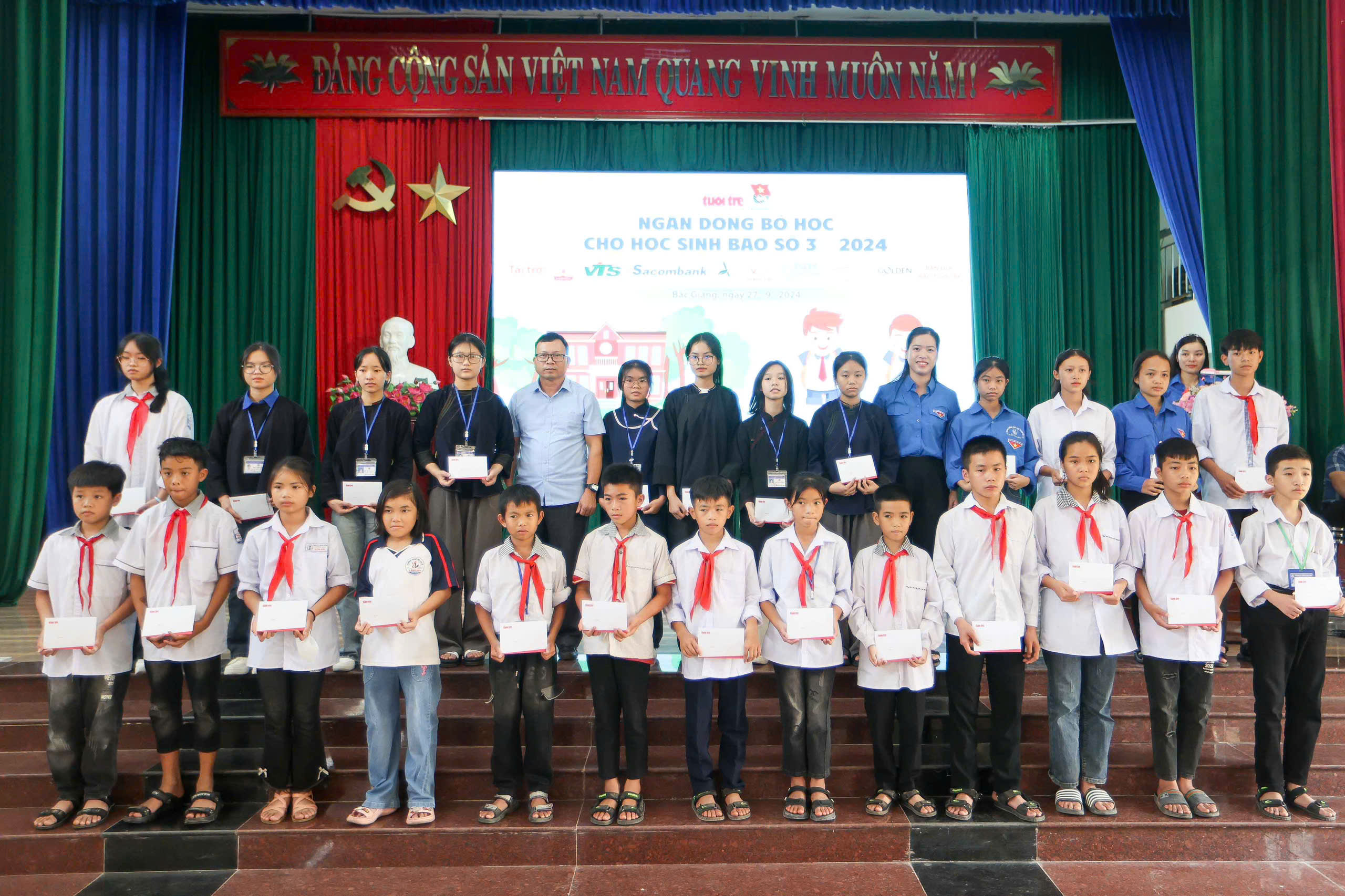 Dịp này, Báo Tuổi trẻ trao tặng 100 suất học bổng cho các em học sinh khối THCS, THPT (trị giá 3 triệu đồng/suất) và 10 suất hỗ trợ cho giáo viên (trị giá 5 triệu đồng/suất) thuộc các huyện: Sơn Động, Lục Ngạn, Lạng Giang, Lục Nam, Yên Dũng, Hiệp Hòa, Yên Thế, thị xã Việt Yên và Đoàn Các cơ quan tỉnh.